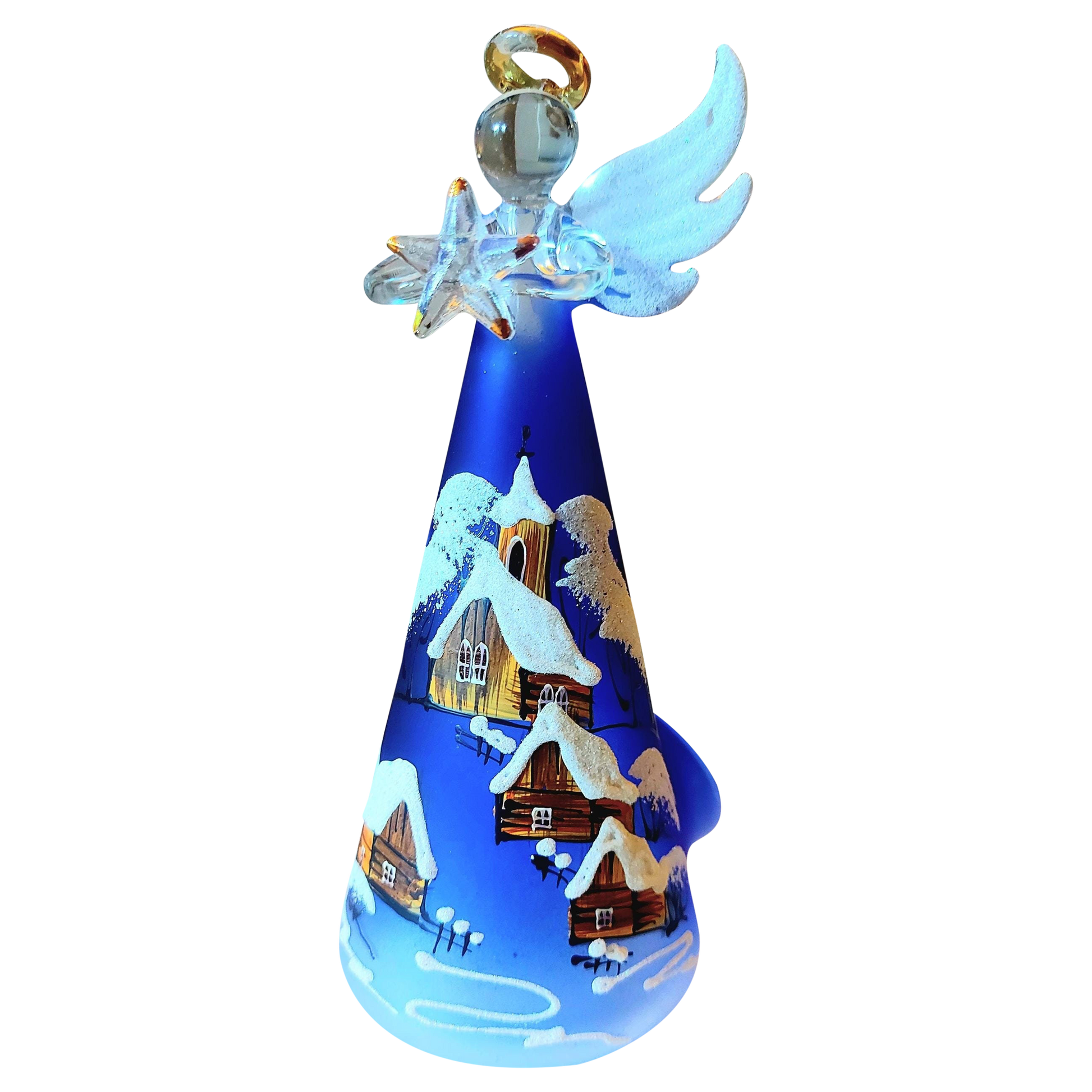 Czech Hand-Painted Glass Angel Christmas Ornament: Blue Village Candle Holder