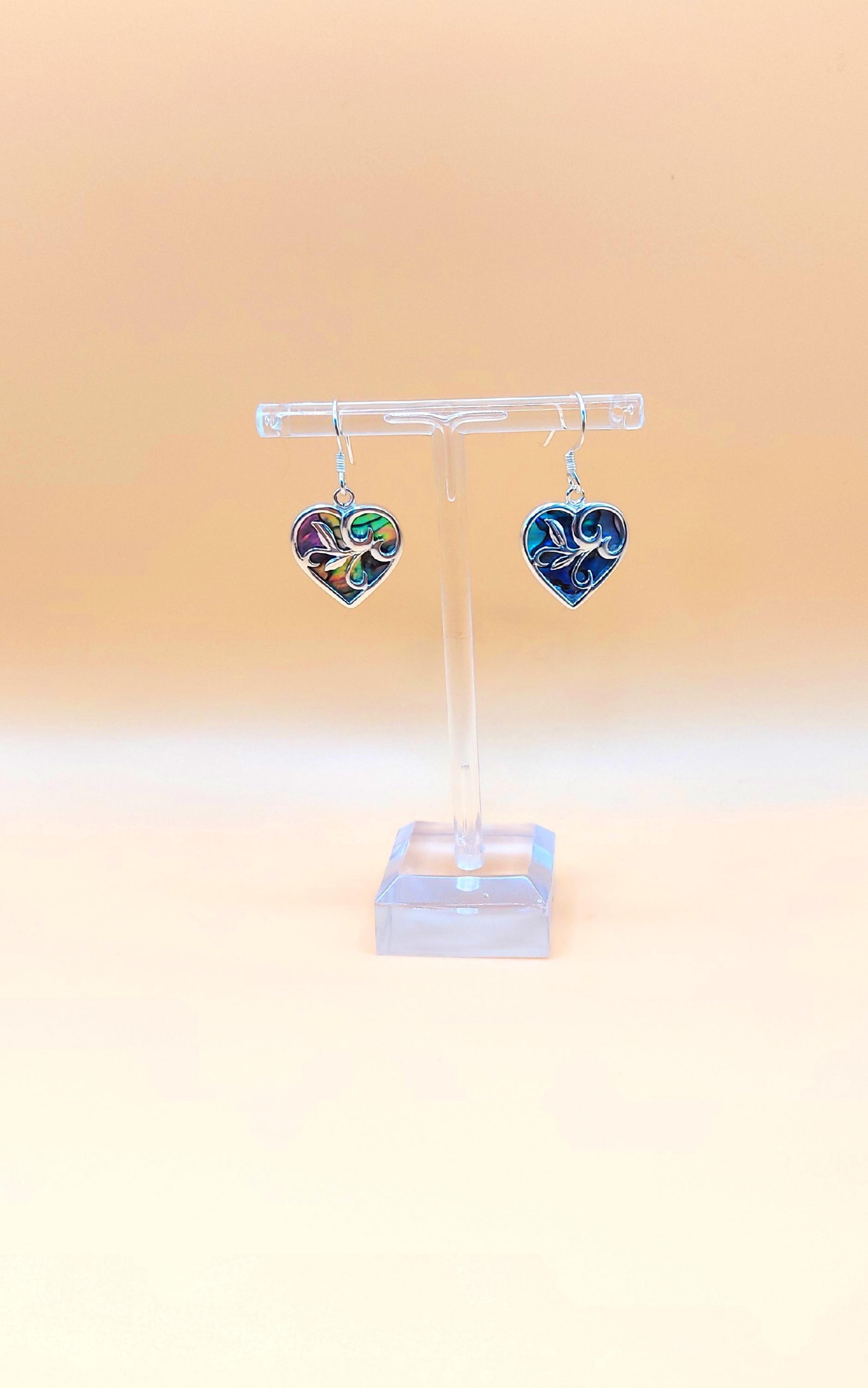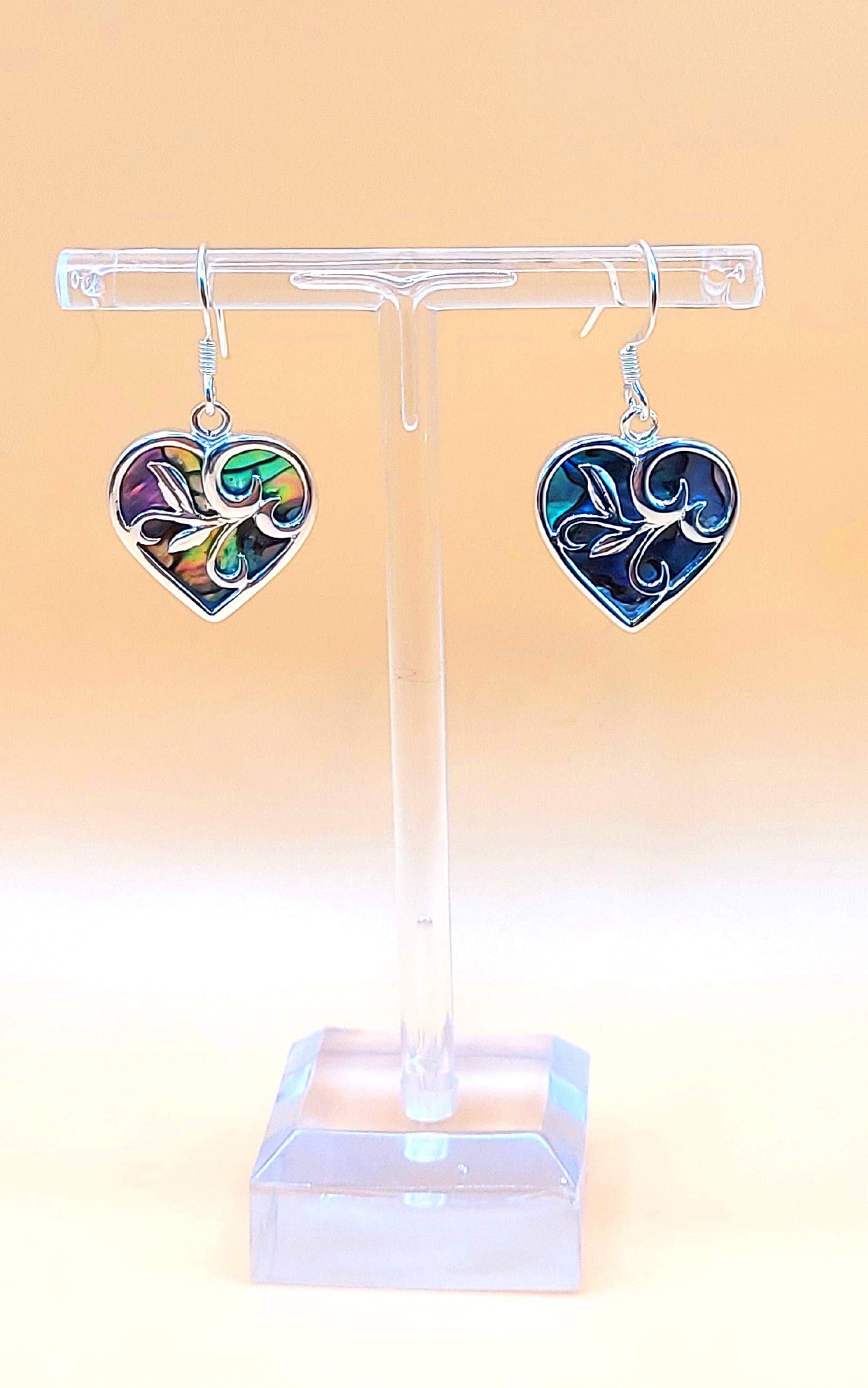 Silver Handmade Inlay Earrings Semi Precious Abalone Shell- Heart