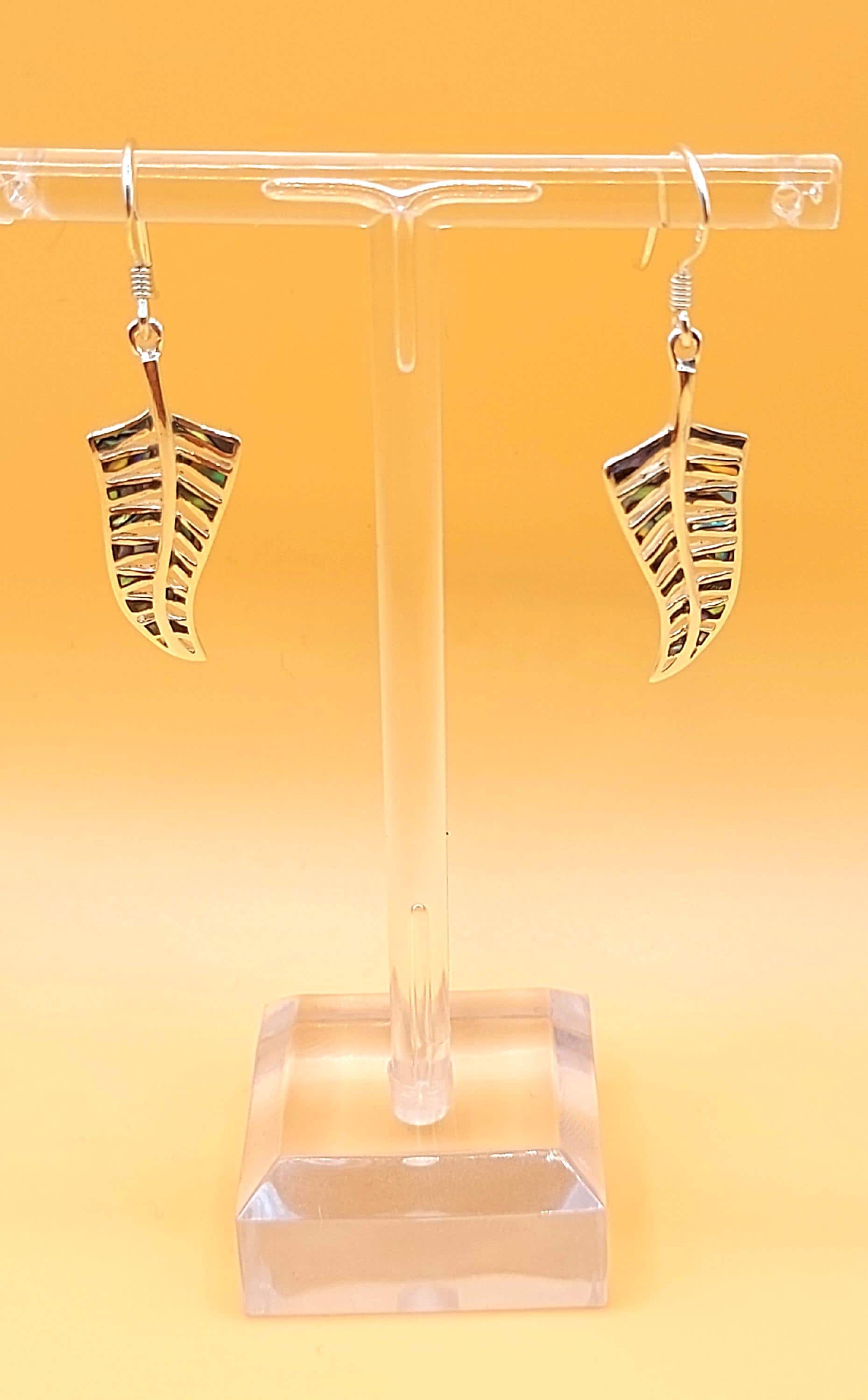 Silver Handmade Inlay Earrings Semi Precious Abalone Shell- Leaf