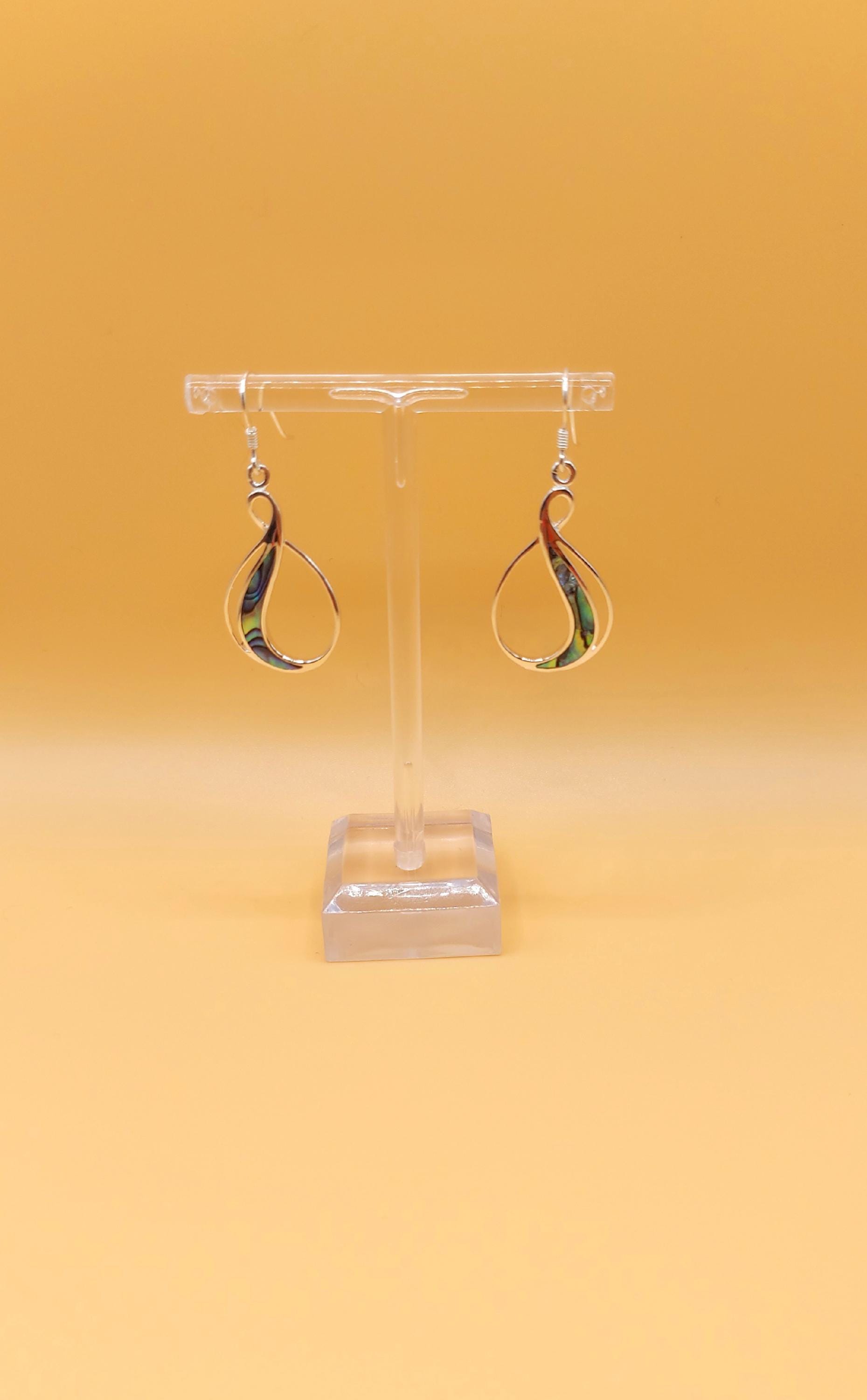 Silver Handmade Inlay Earrings Semi Precious Abalone Shell- Loop