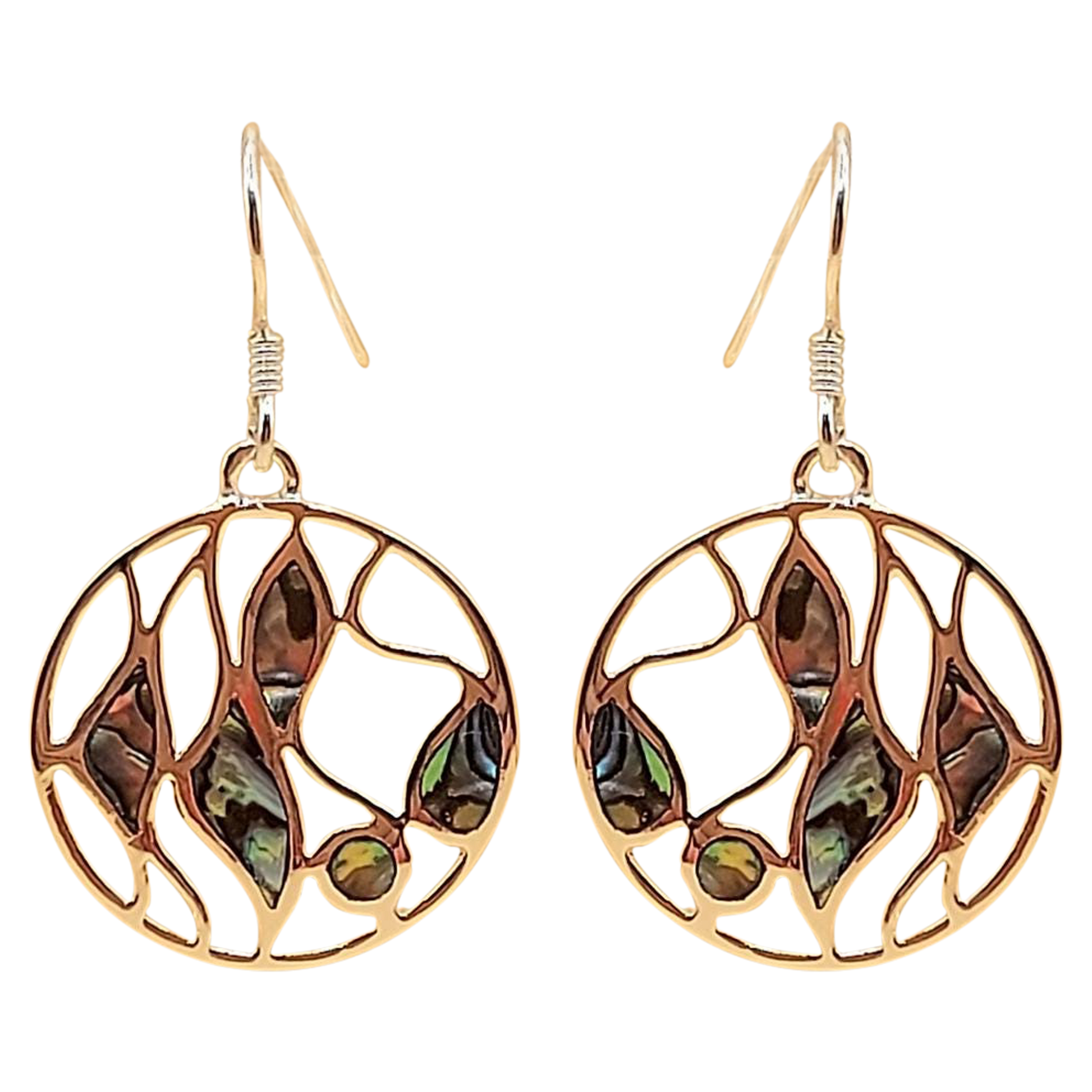 Silver Handmade Inlay Earrings Semi Precious Abalone Shell- Multi