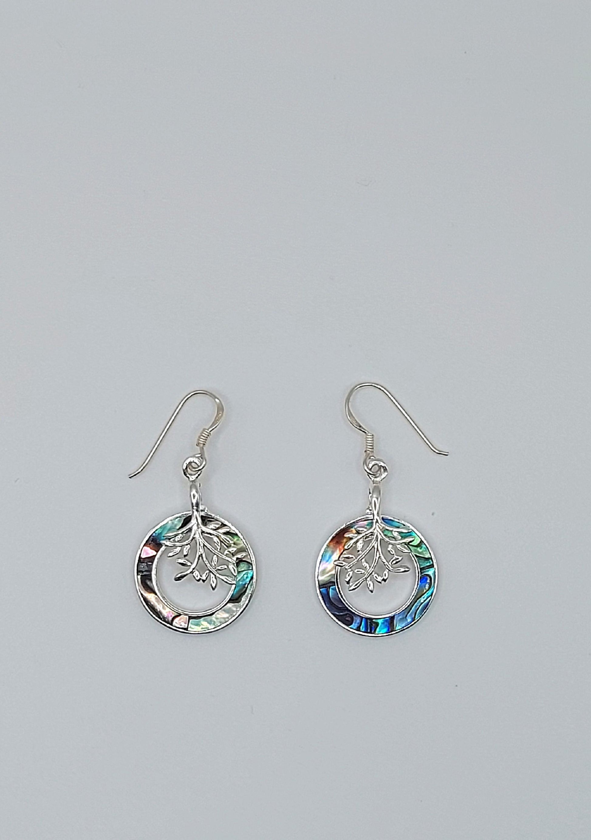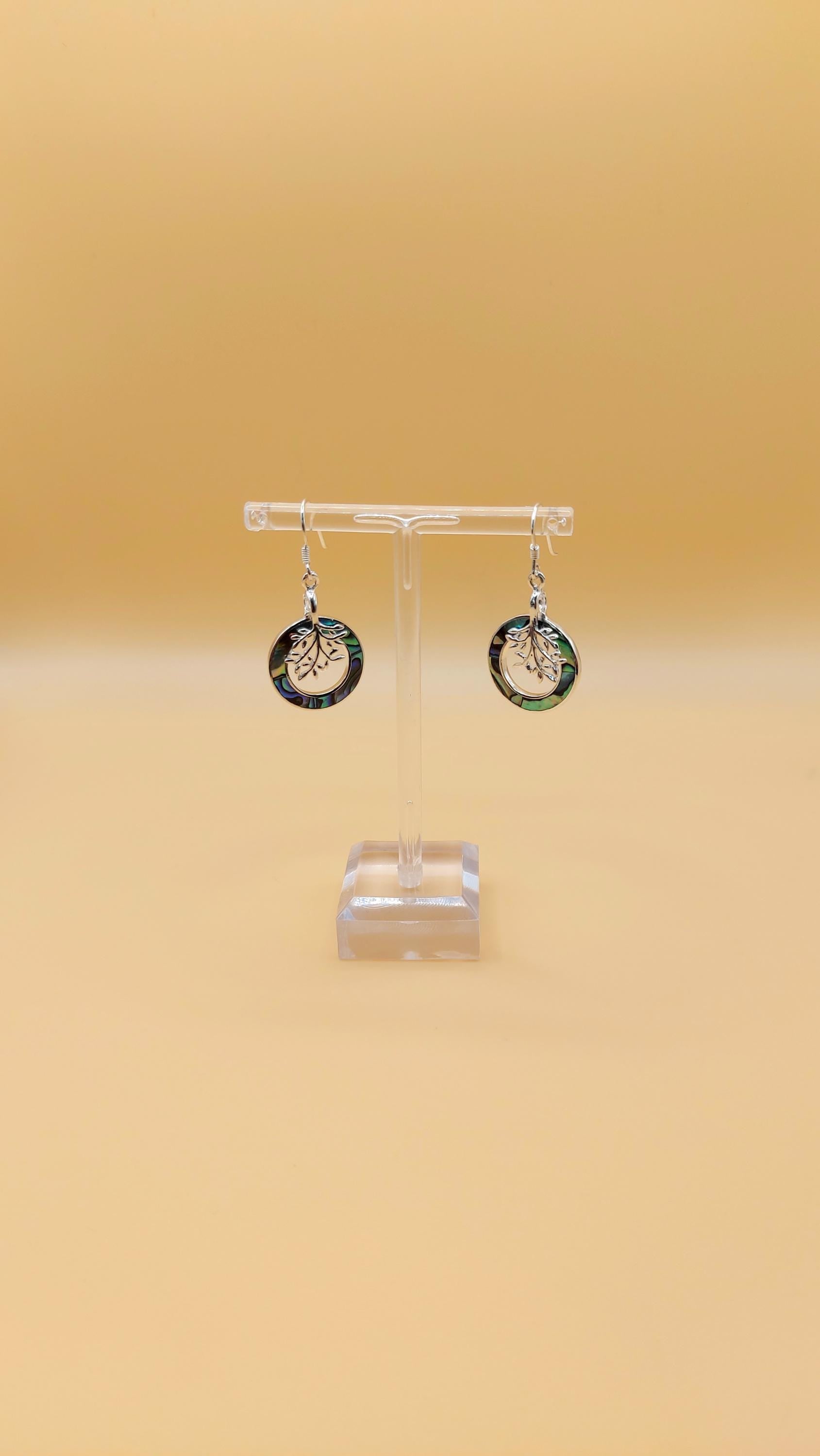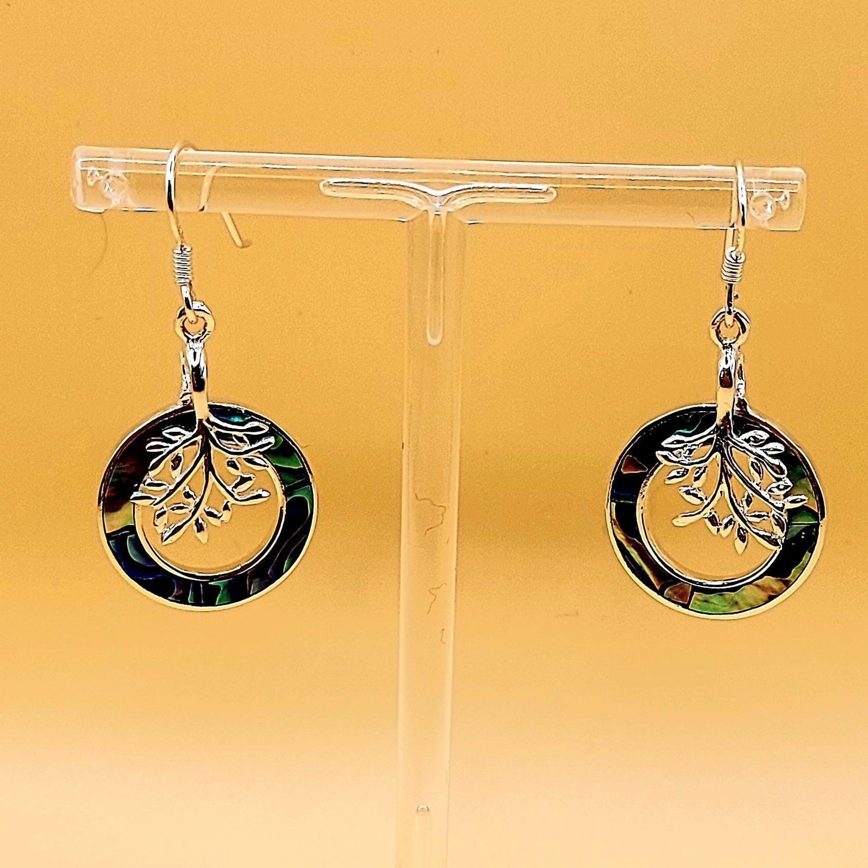 Silver Handmade Inlay Earrings Semi Precious Abalone Shell- Tree of Life