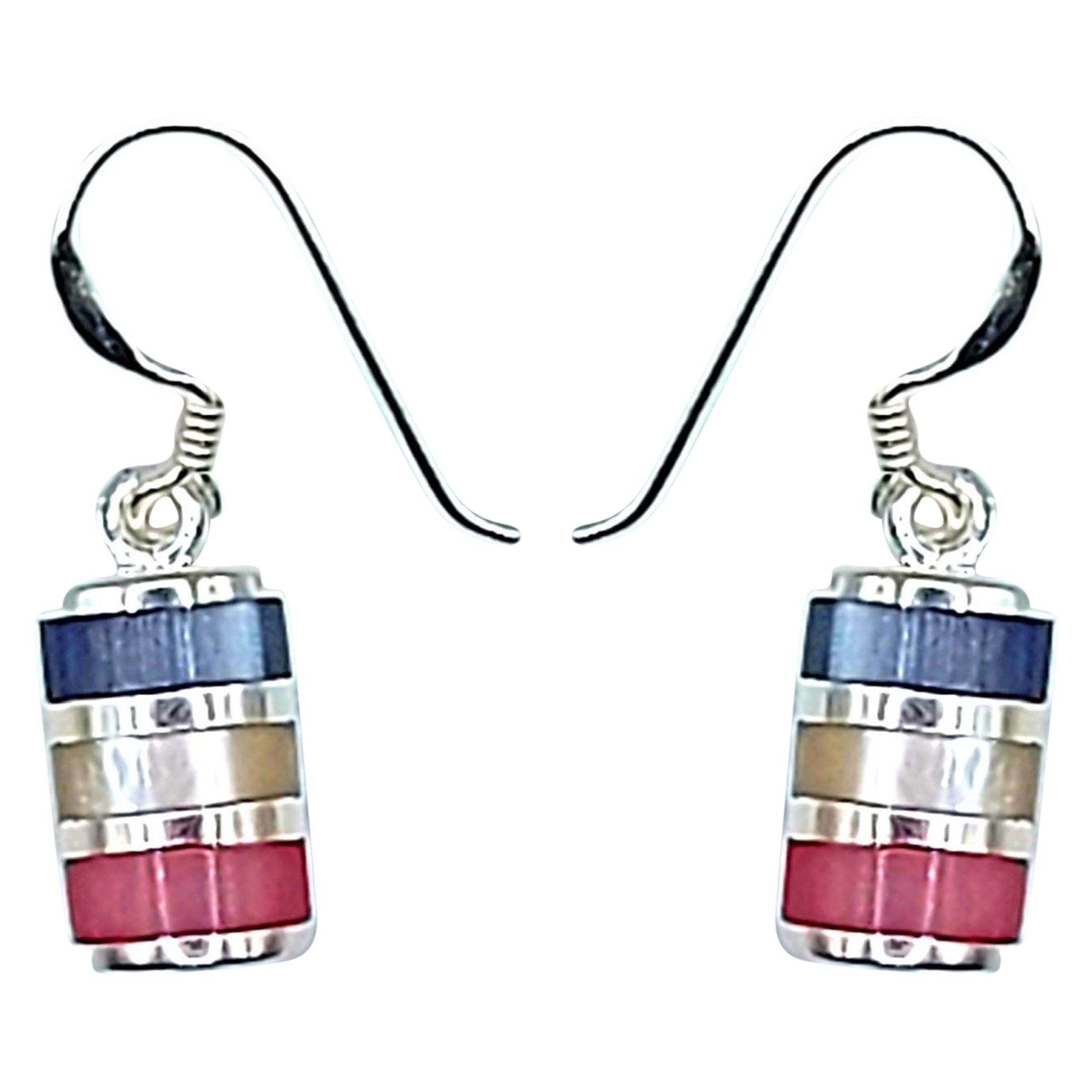 Silver Handmade Inlay Earrings Semi Precious Natural Shell- Multi Colour