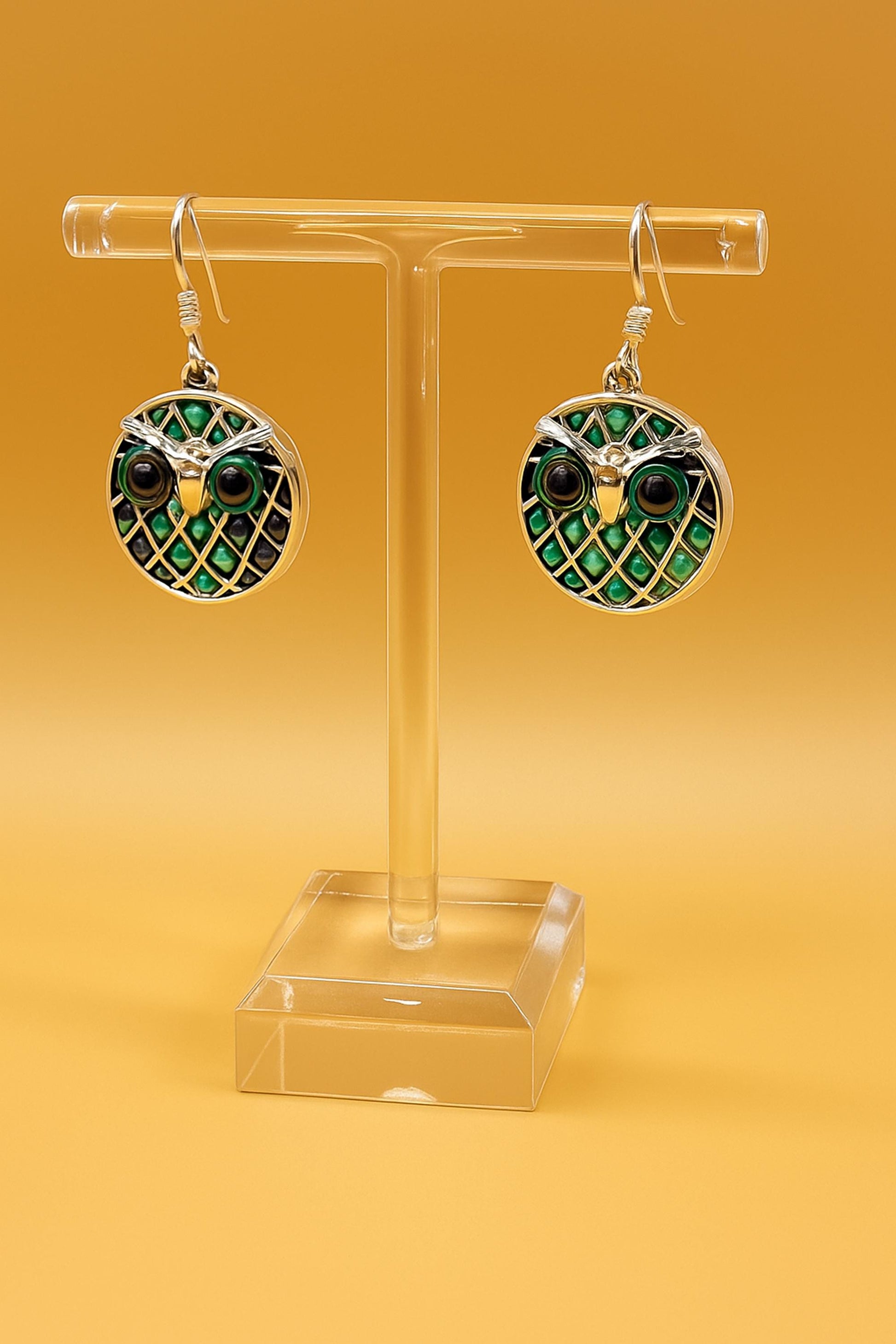 Silver Handmade Inlay Pendant/Earring Set Semi Precious Abalone Shell- Owl