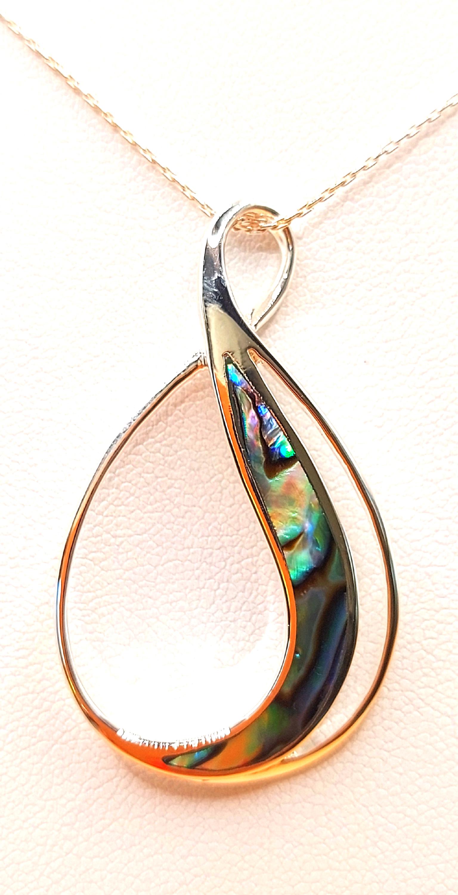 Silver Handmade Inlay Pendant Semi Precious Abalone Shell- Loop