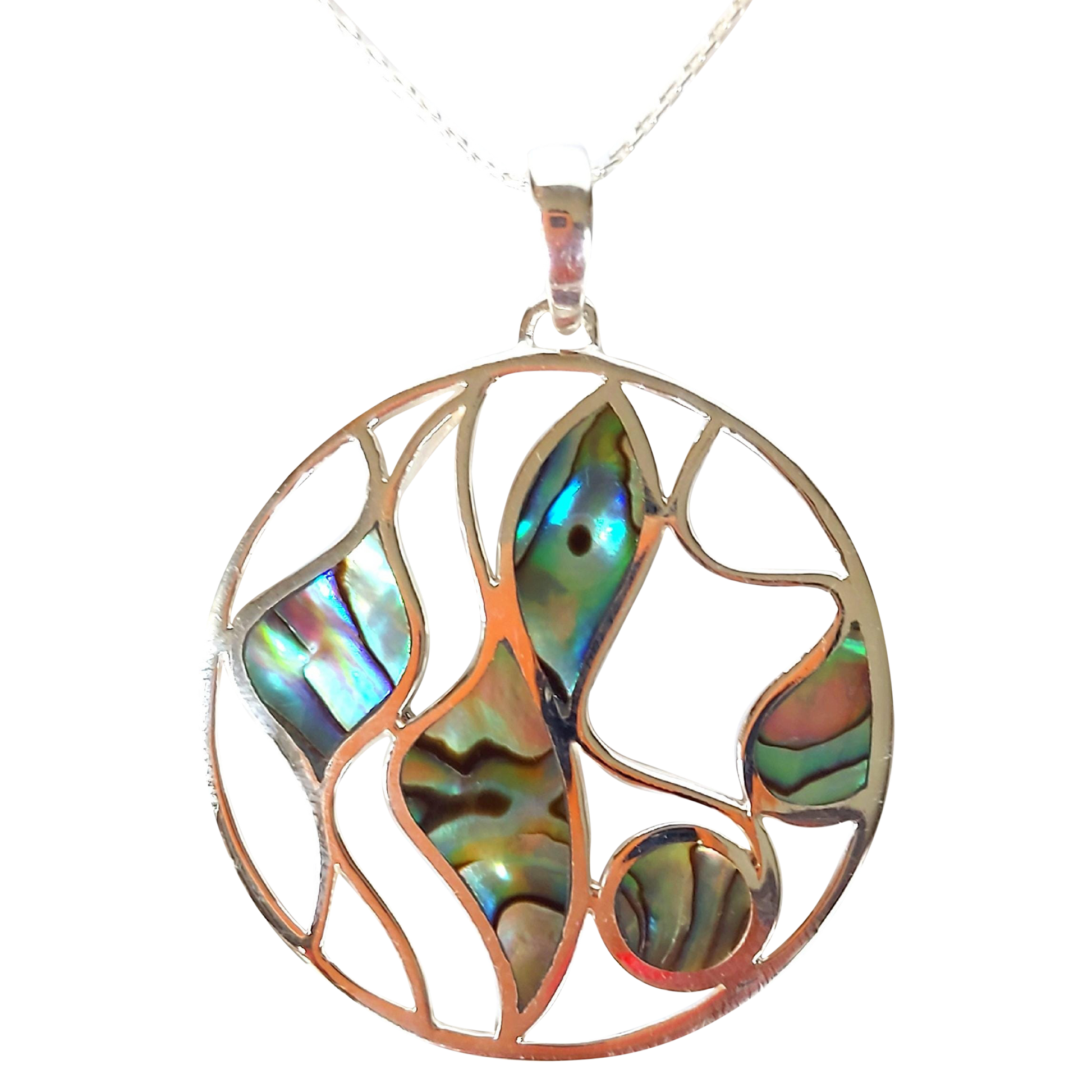 Silver Handmade Inlay Pendant Semi Precious Abalone Shell- Multi