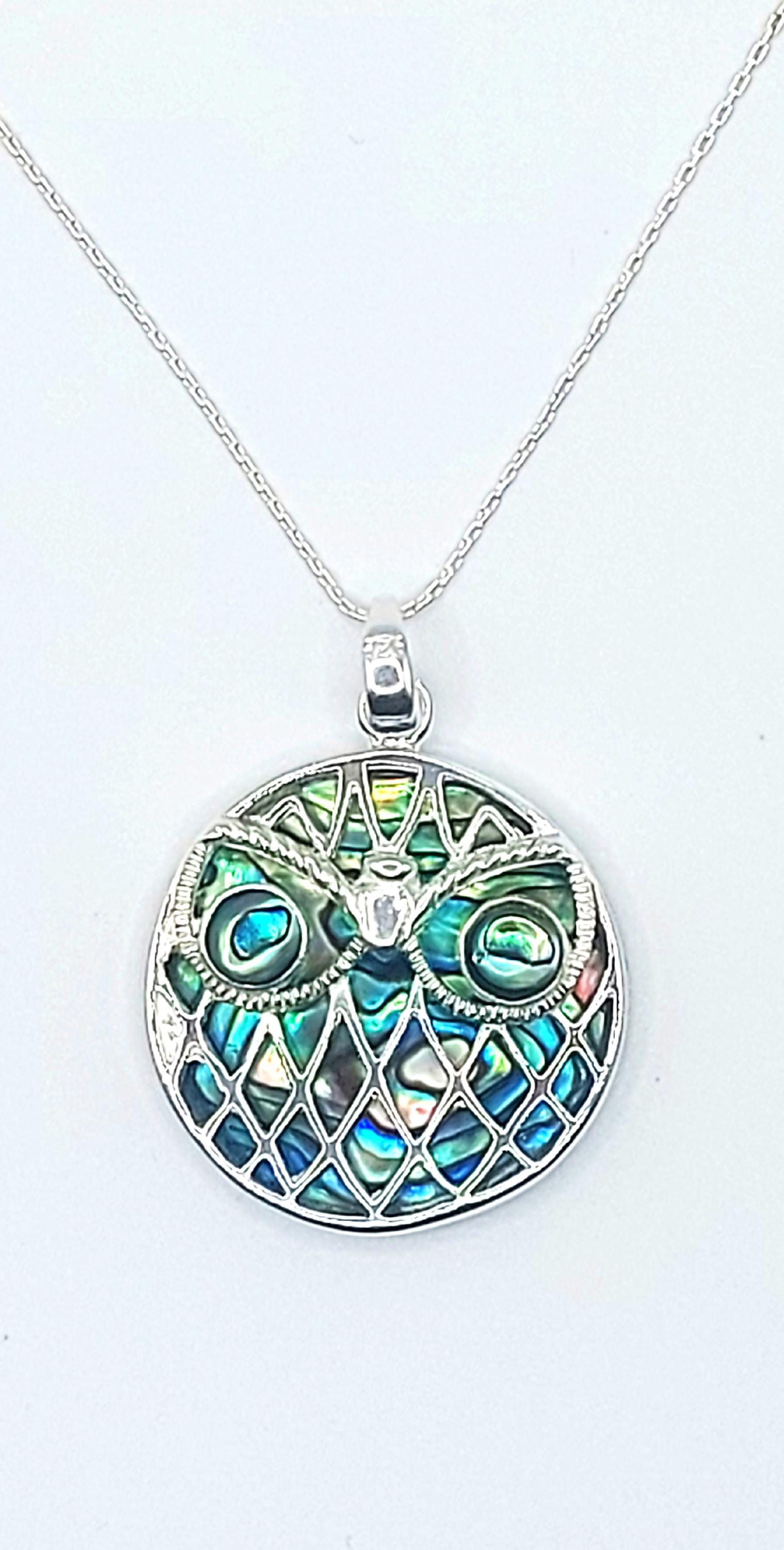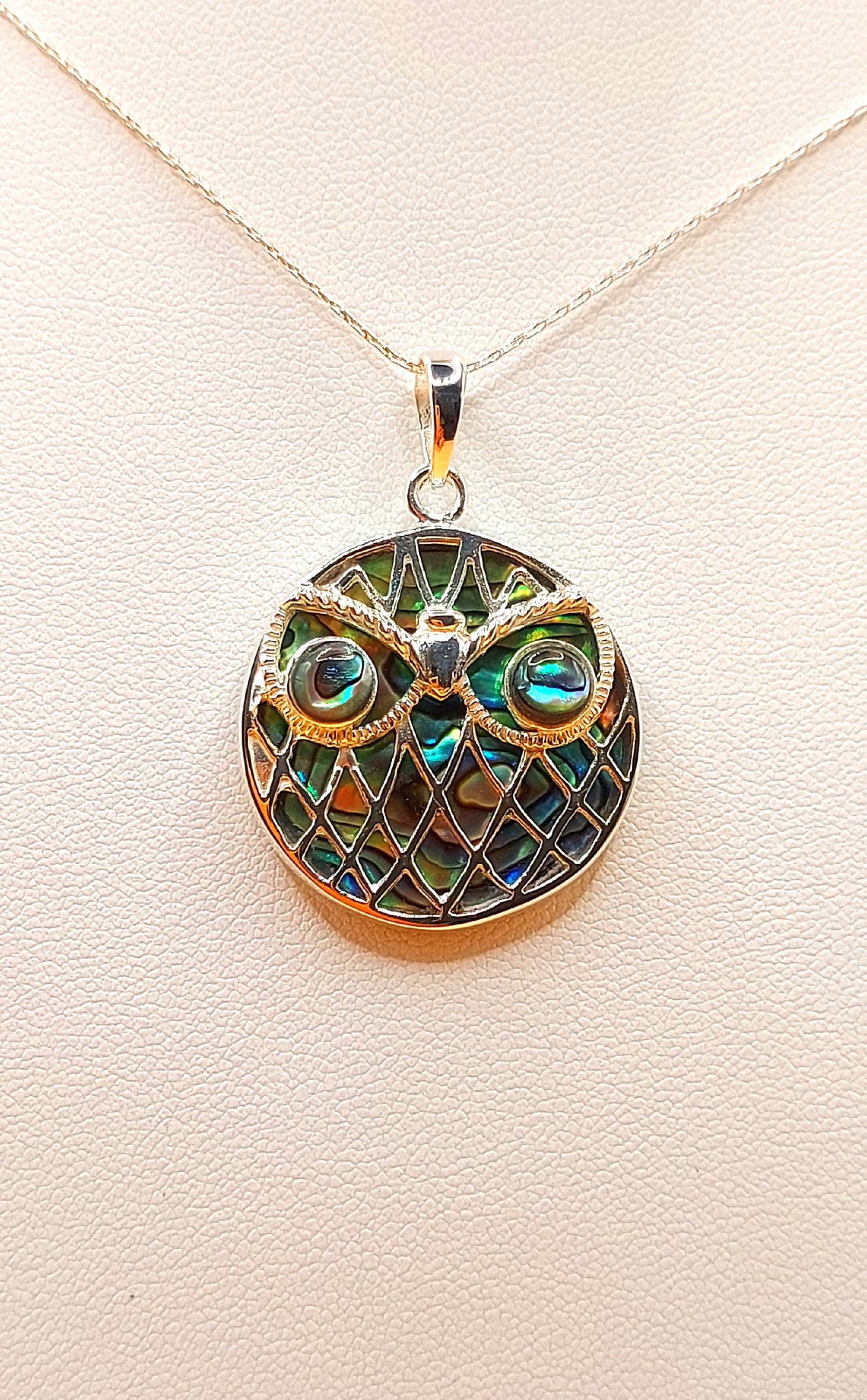 Silver Handmade Inlay Pendant Semi Precious Abalone Shell- Owl