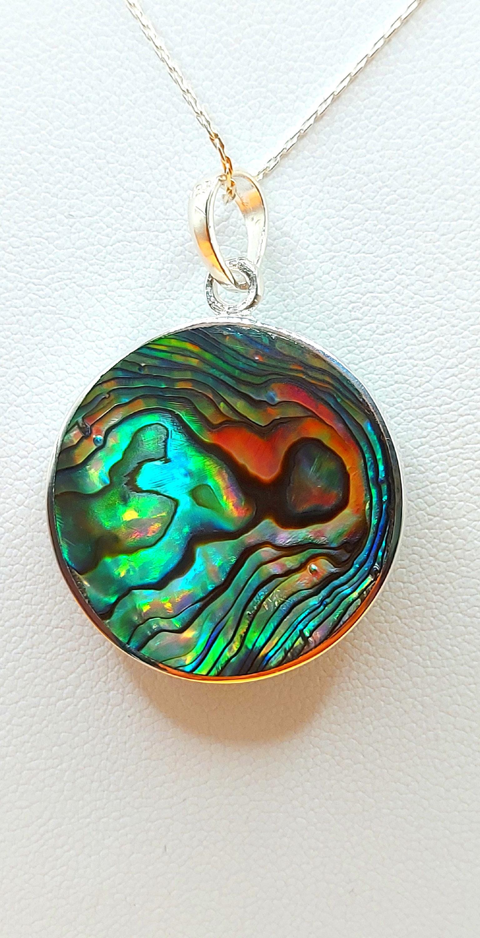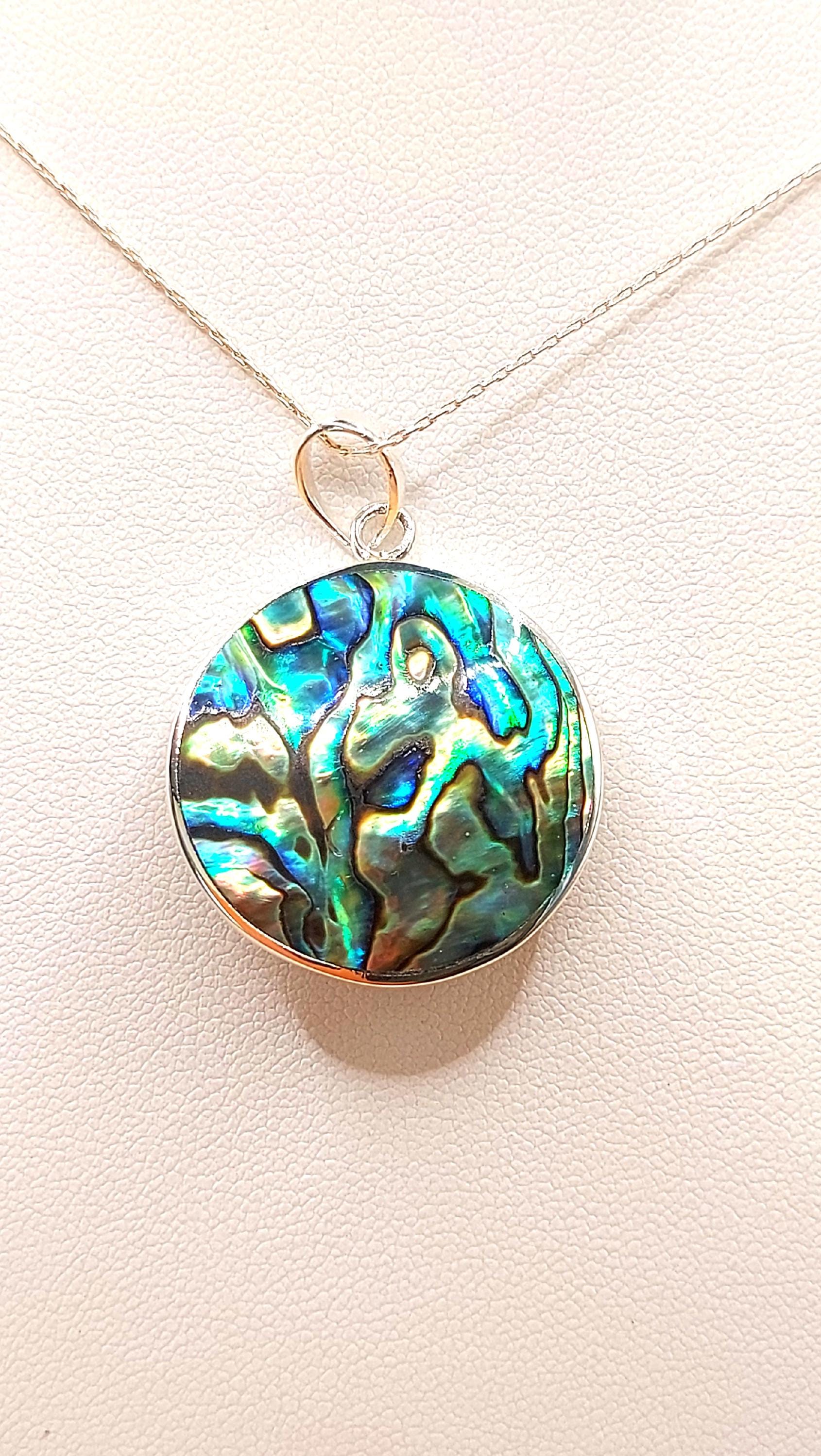 All listing prices are inclusive of tariffs and duty! You only pay for postage!Silver Handmade Inlay Pendant Semi Precious Abalone Shell (option 16/18 inch silver chain):