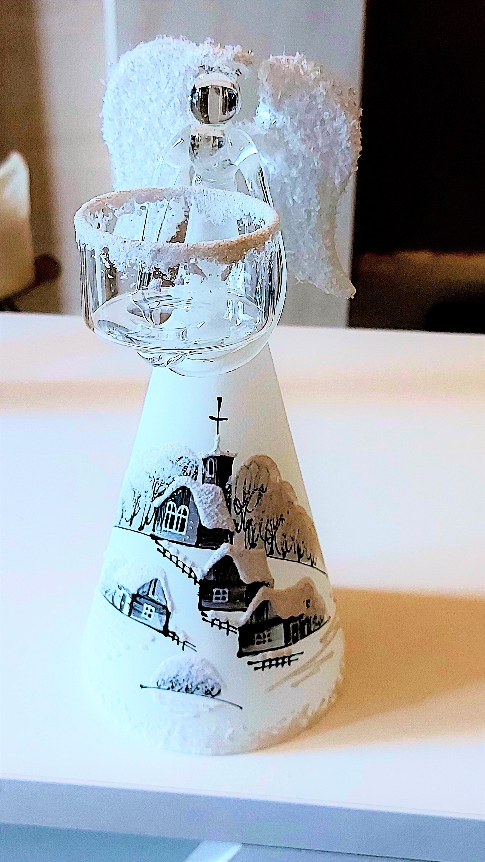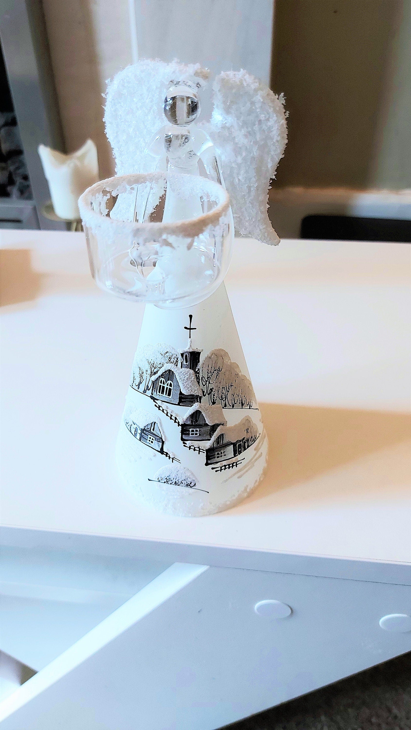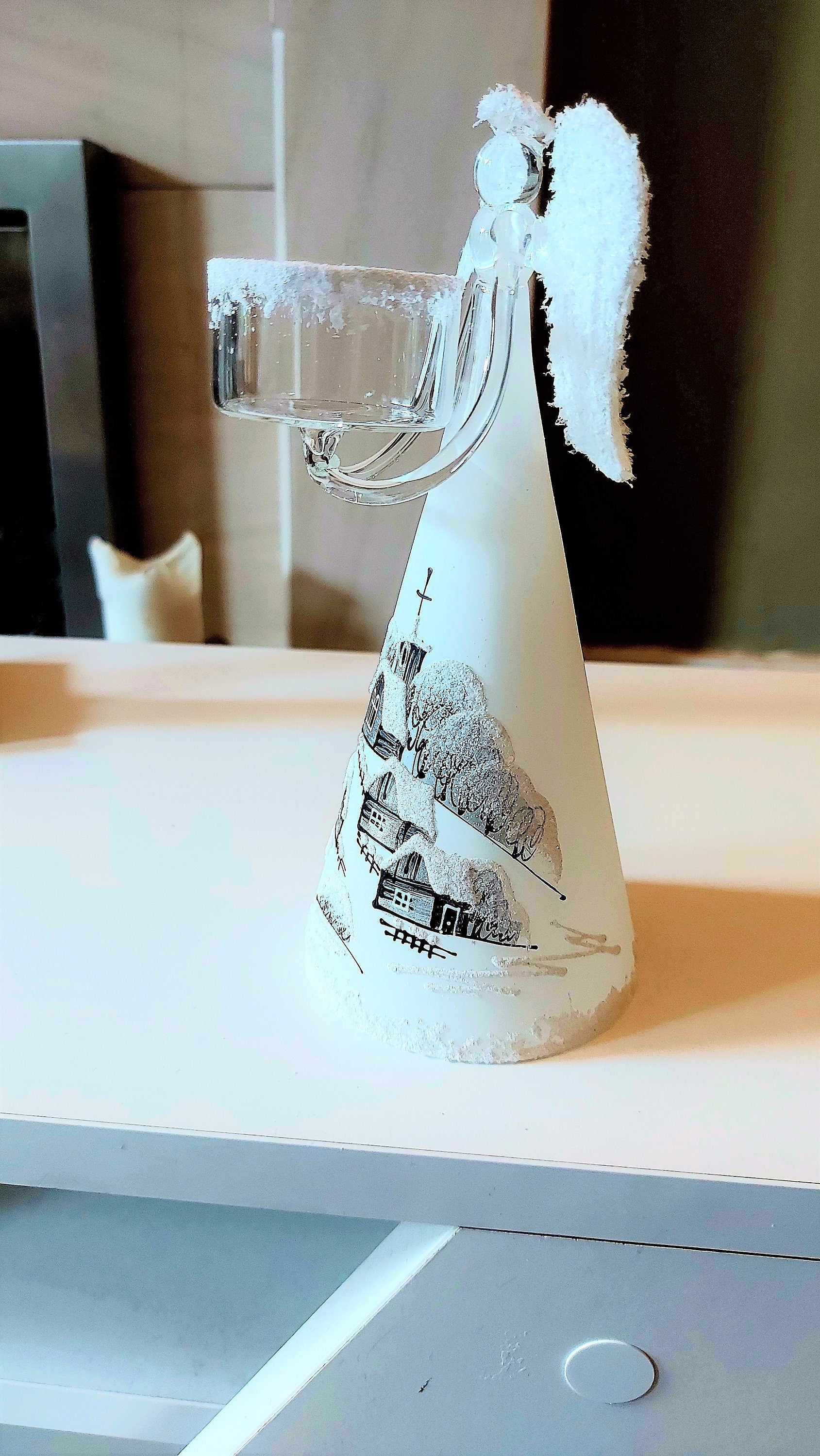 Vintage Czech Glass Angel Christmas Ornament: Hand-Painted Candle Holder