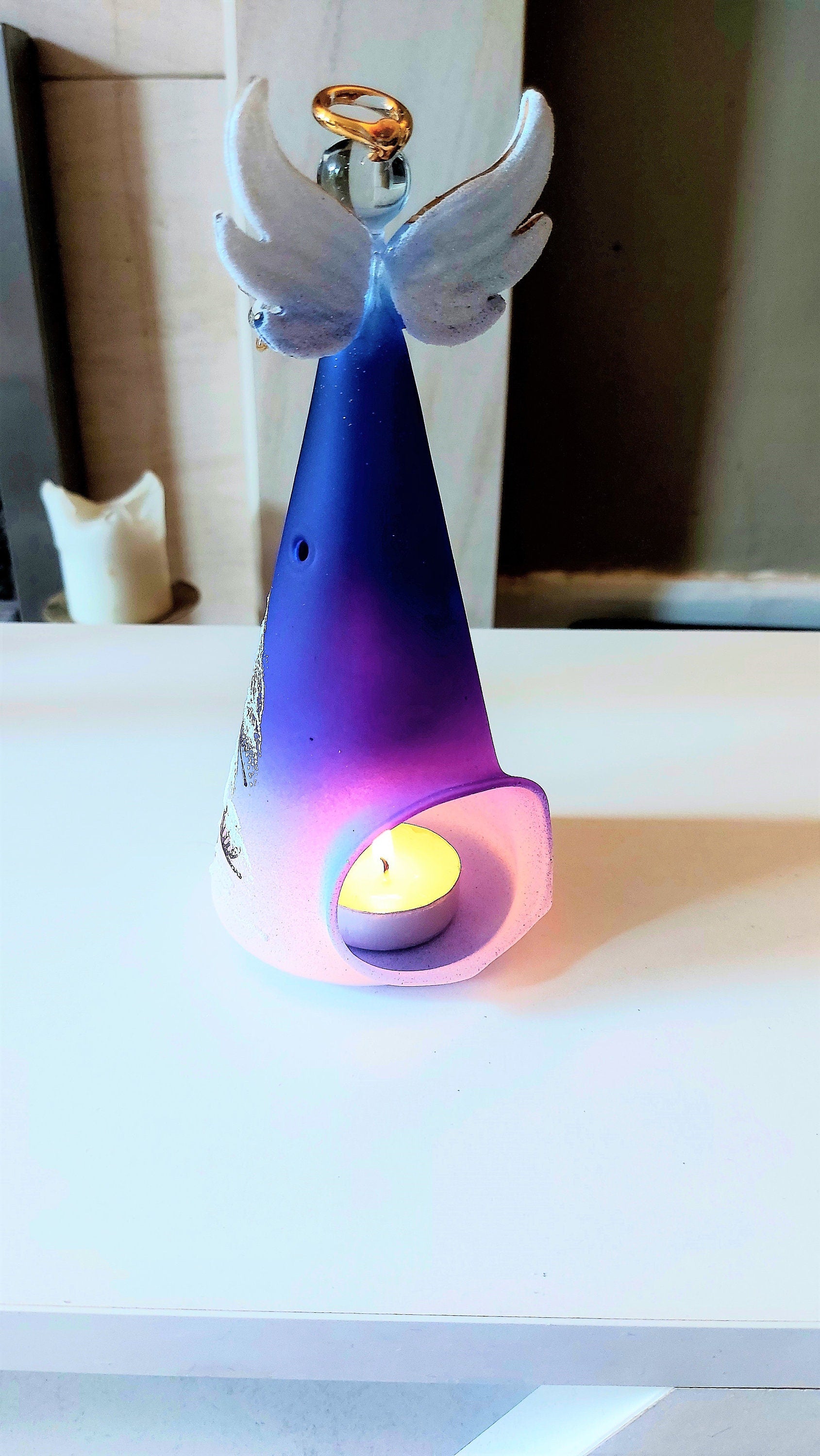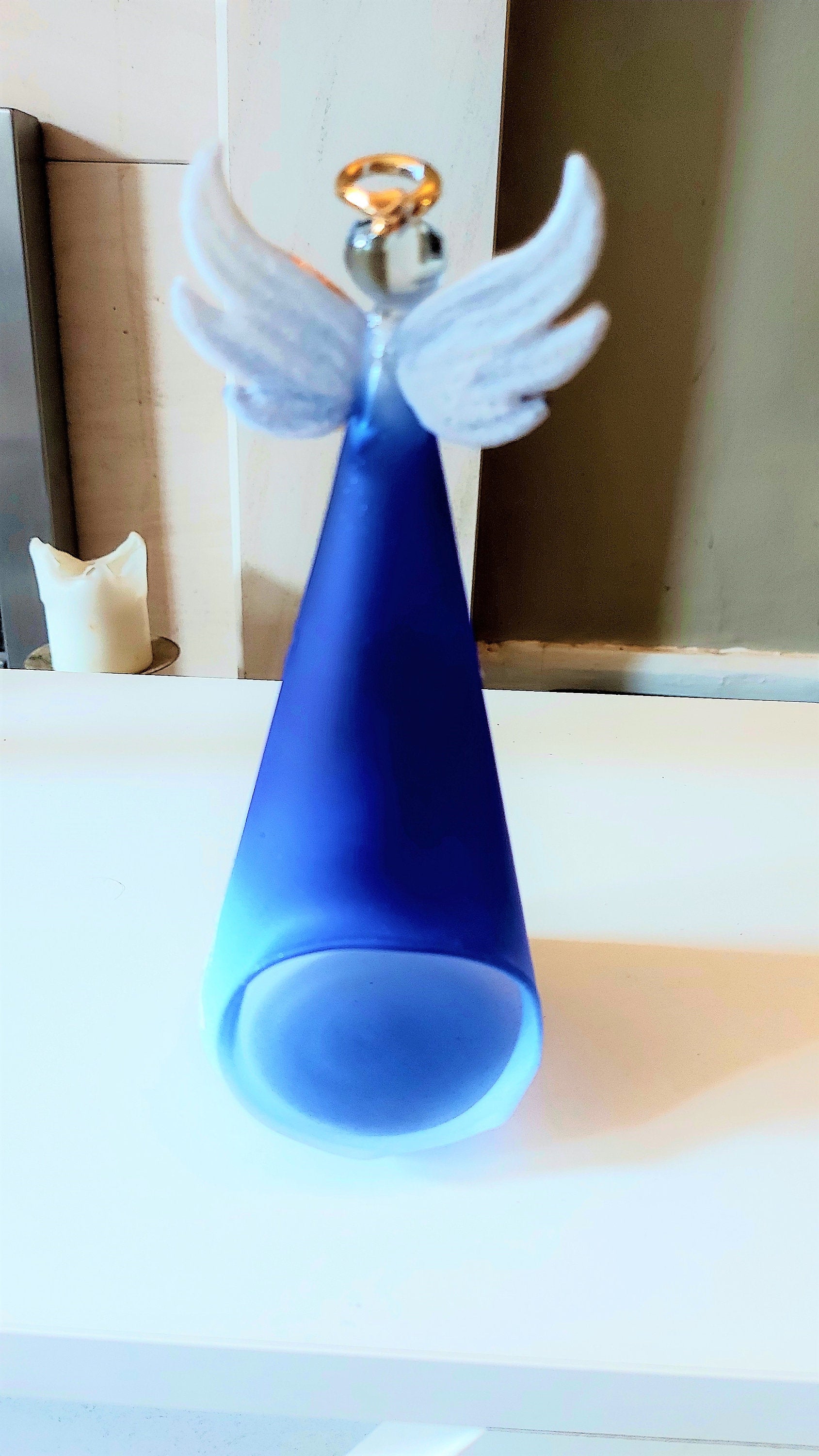 Vintage Czech Glass Angel Christmas Ornament: Hand-Painted Winter Village Candle Holder (Blue)