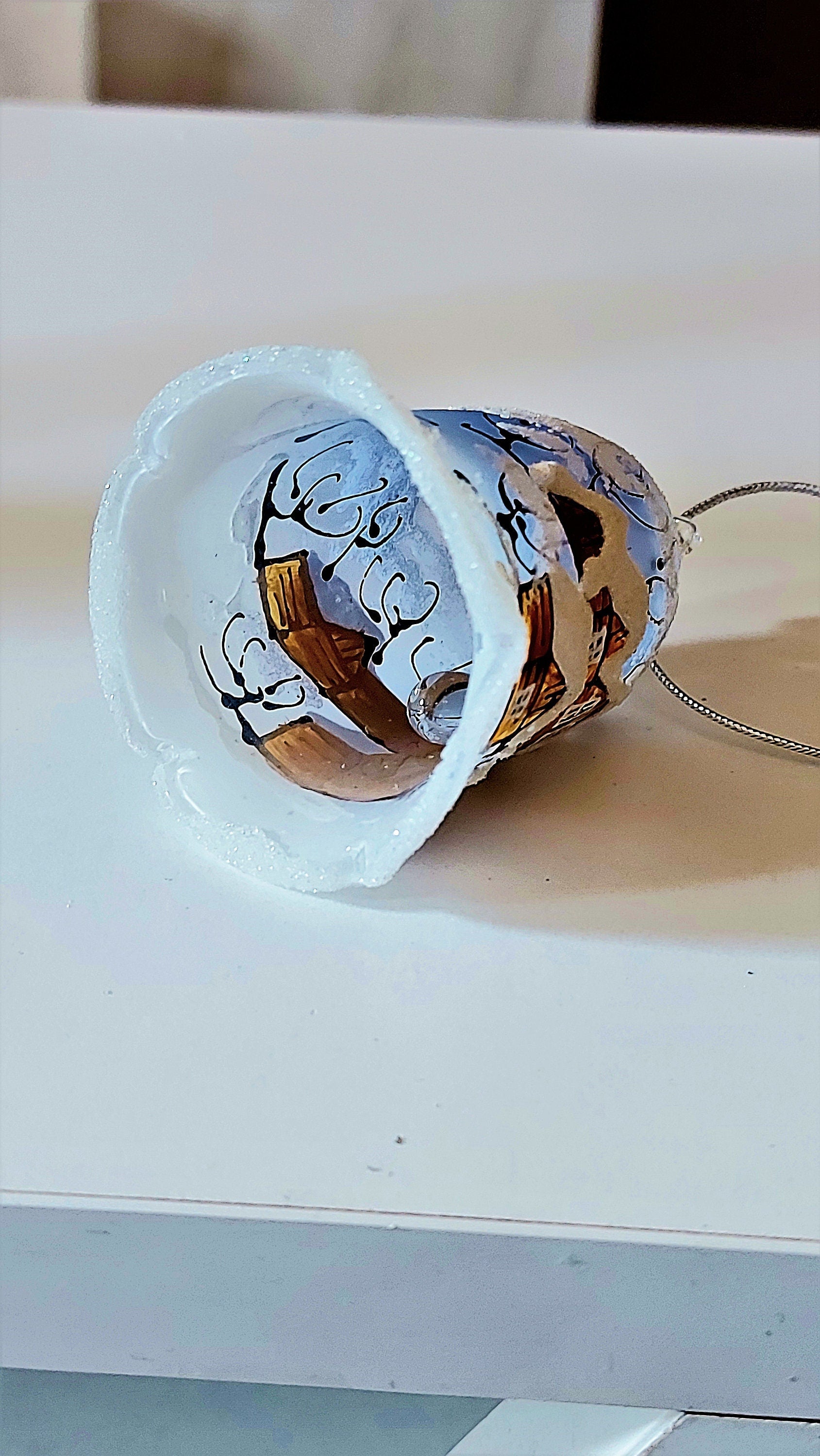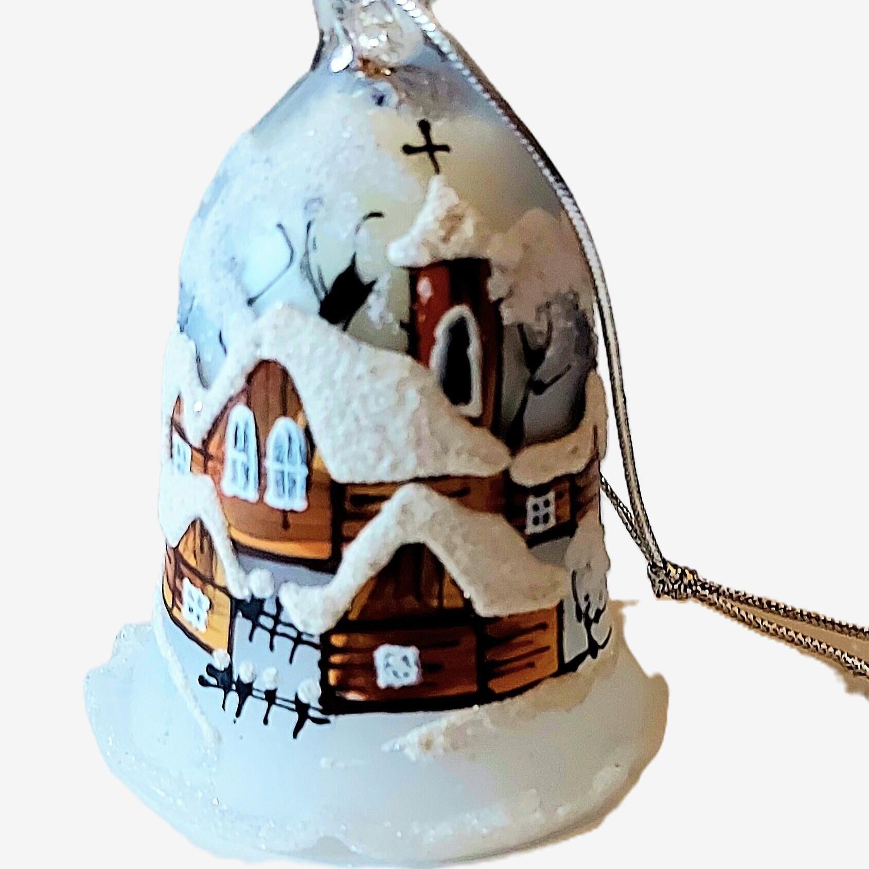 Vintage Czech Glass Bell Ornament: Hand-Painted Winter Village
