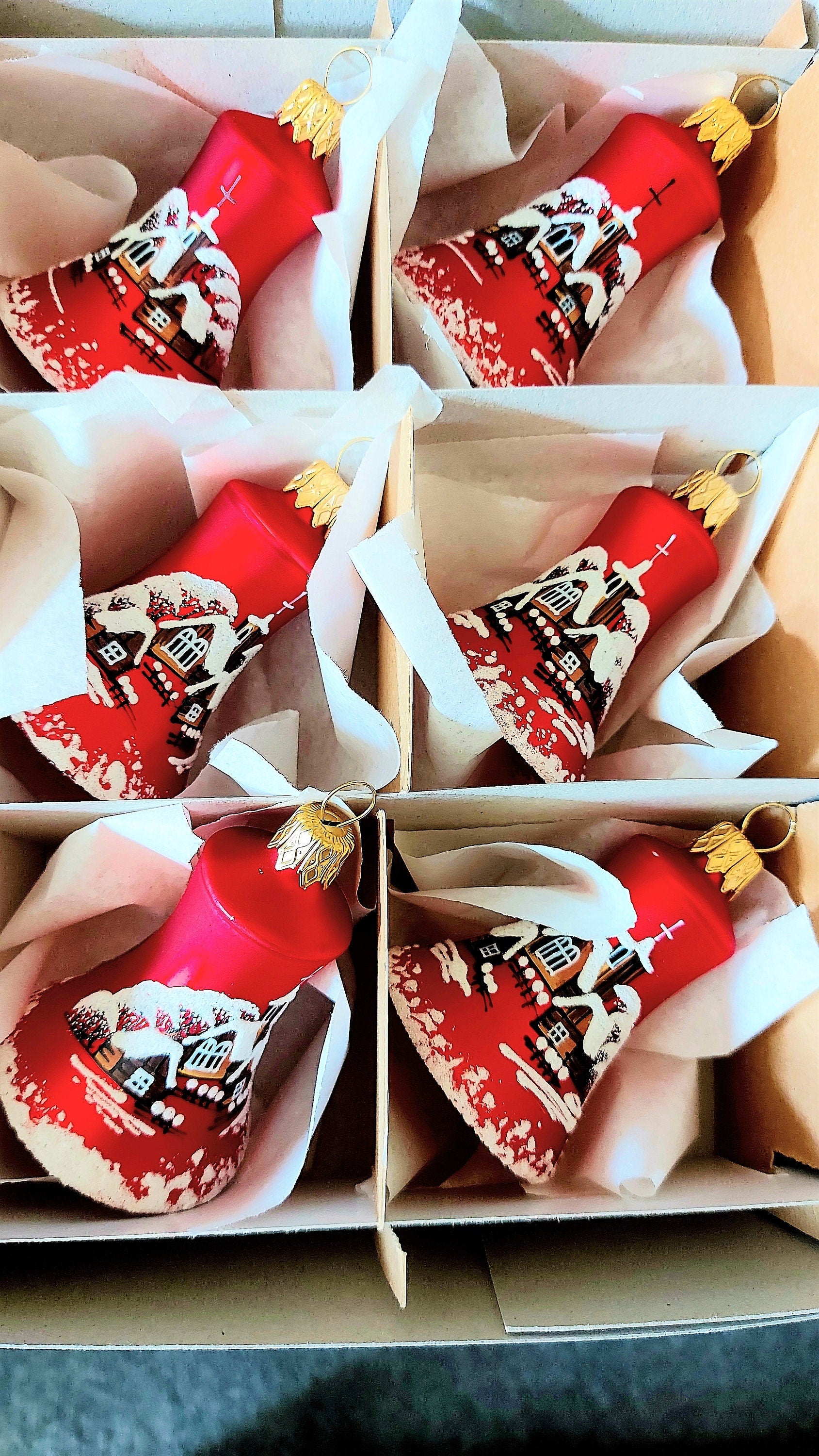 All listing prices are inclusive of tariffs and duty! You only pay for postage! Czech Republic glass blown, hand painted tree decoration made by a company called Astralex who have stalls in the Prague Christmas markets. With over 18 years tradition, the ornaments are moulded from original 1930's clay forms which are renovated. Old traditional blowing techniques are used above a burner and then hand painted using high finish acrylic paint, beads and other good quality materials. The process can potentially take hours to decorate one product dependant on size. I trade these products at Winter Wonderland Christmas market in Hyde Park, London. Note any tiny imperfection (if any) makes the product's uniqueness as hand painted and not manufactured. Each bell has a little gong inside that rings like a real bell. W4.5 x H7.5 x D4.5 CM