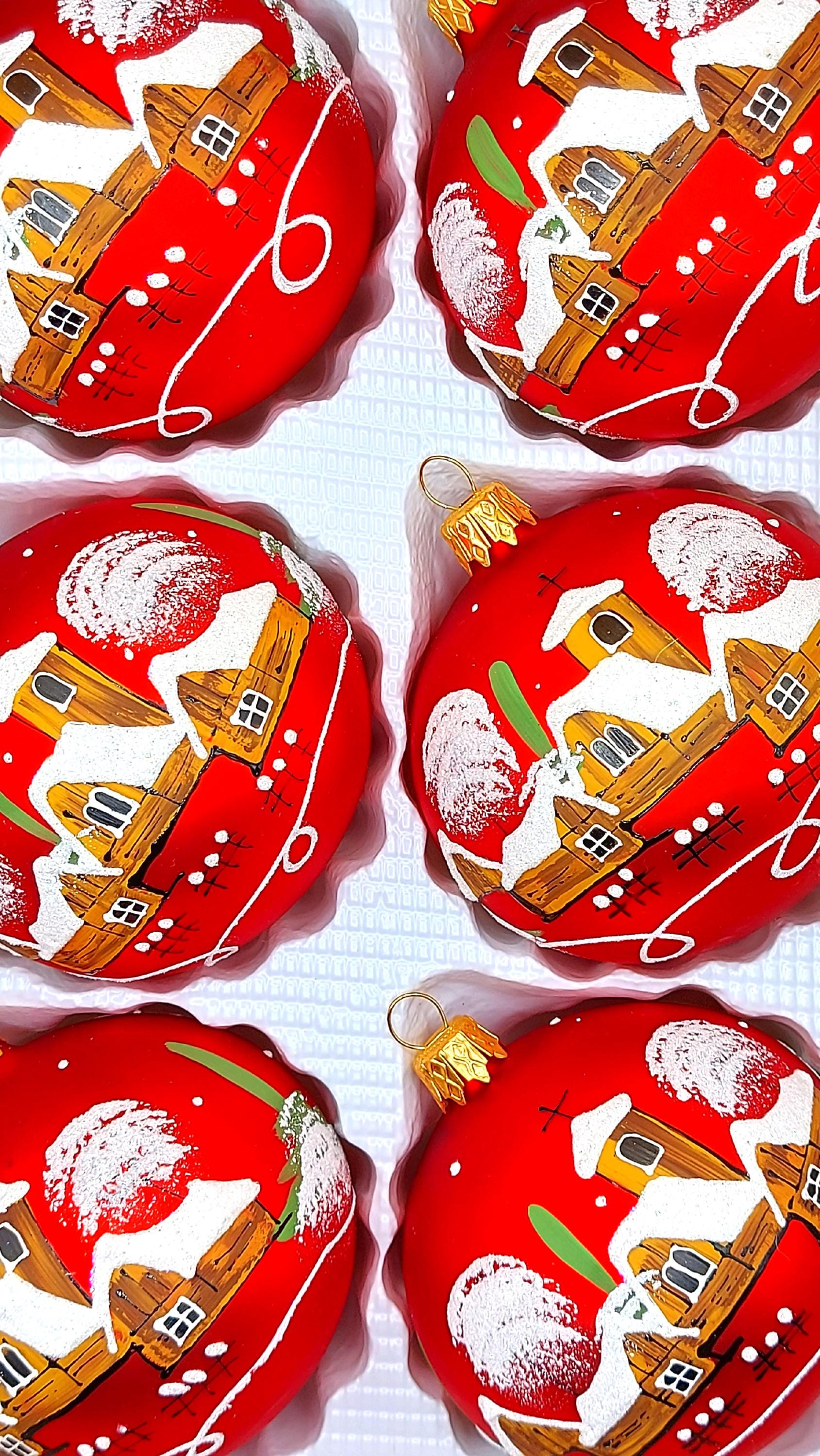 Vintage Czech Glass Christmas Ornament: Hand-Painted Red large Ball