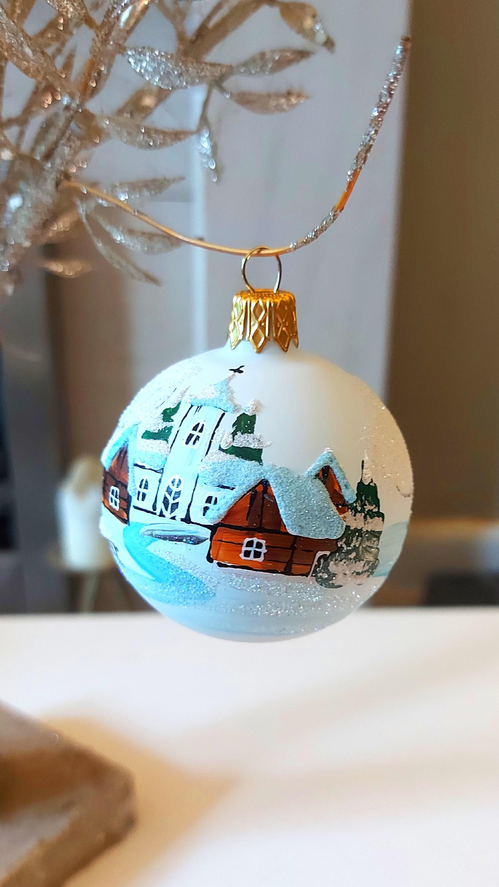 Vintage Czech Glass Christmas Ornament: Hand-Painted White Small Ball