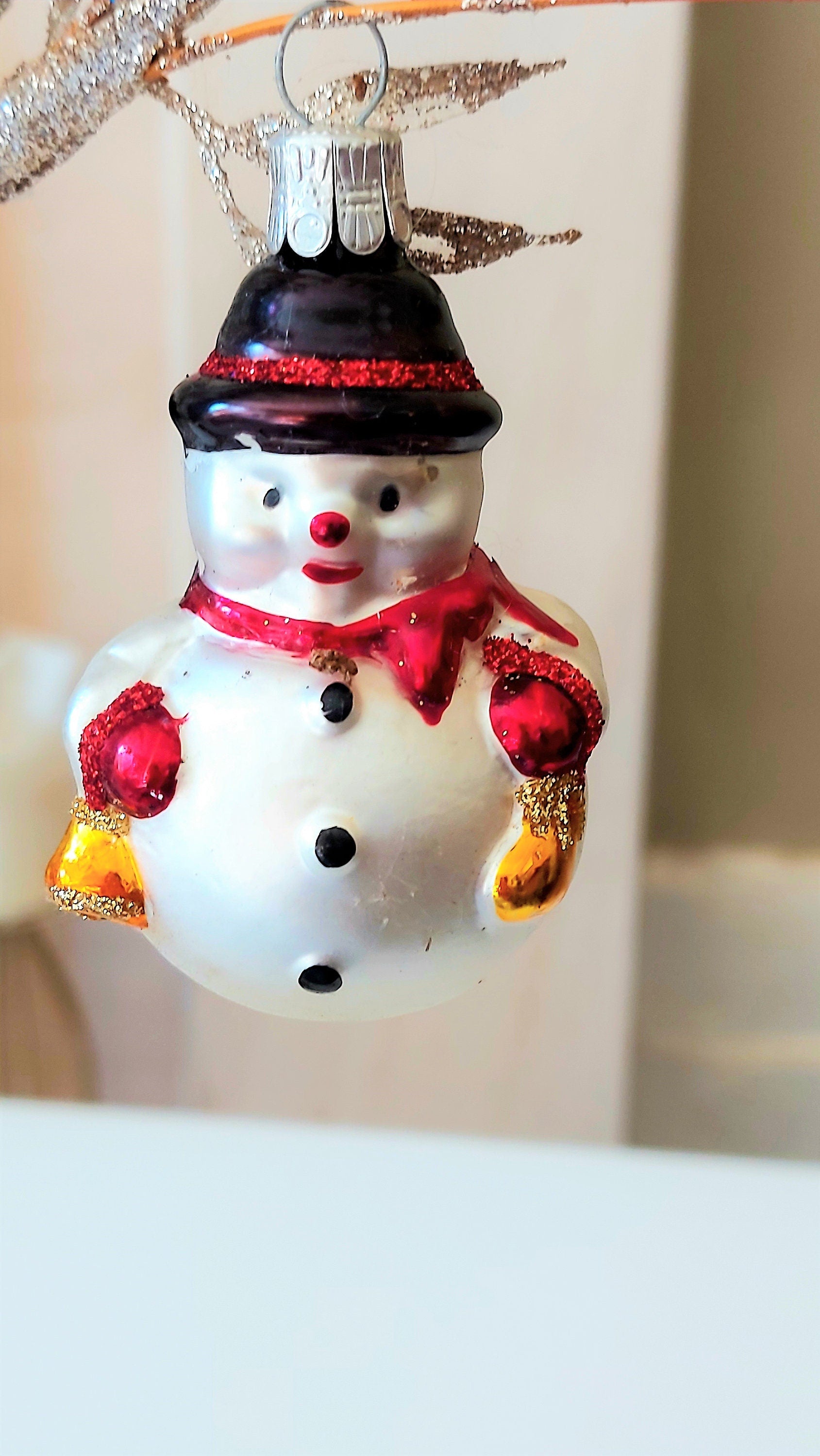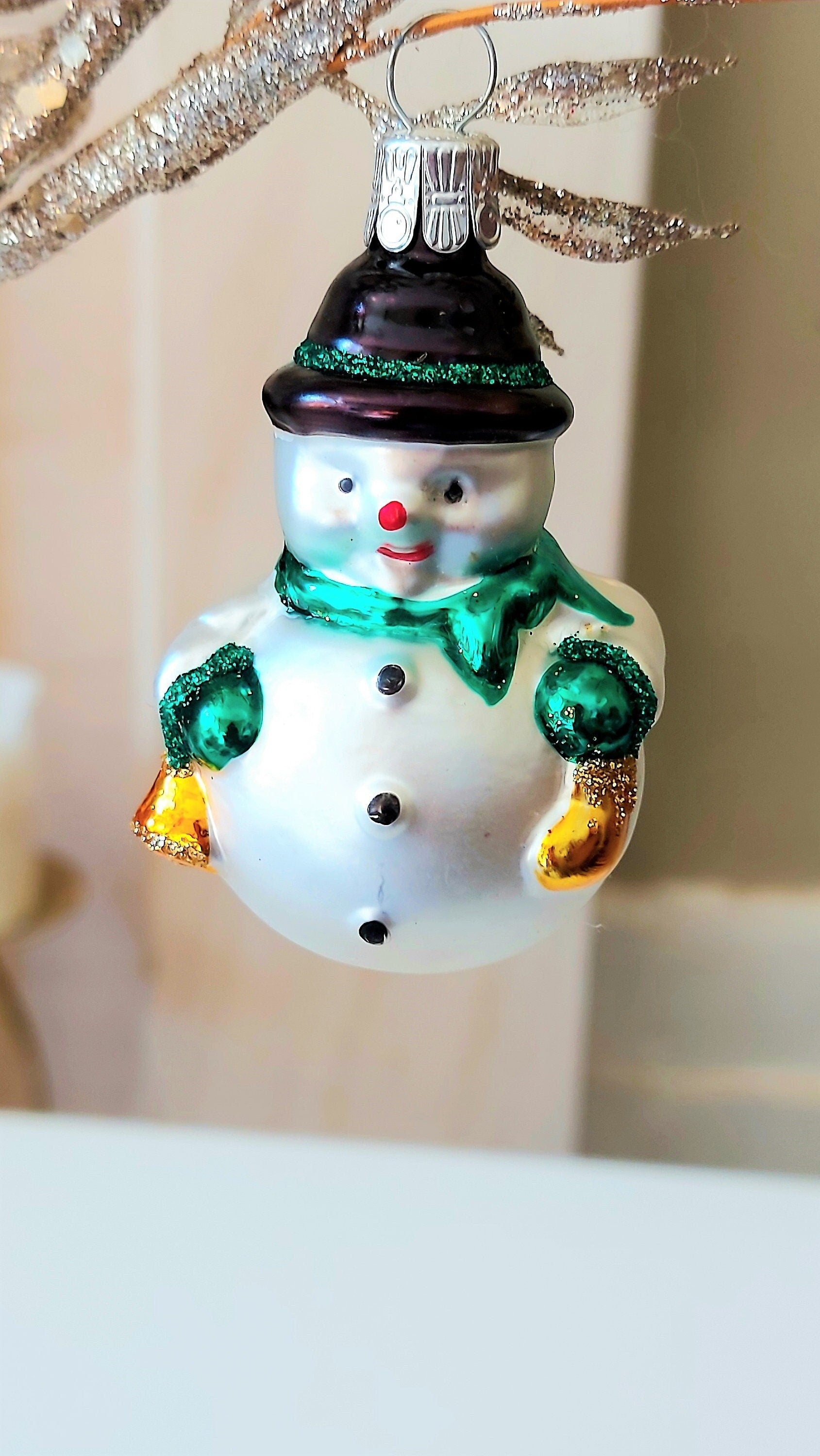 Vintage Czech Glass Snowman Christmas Ornament with Bowler Hat (Pair)
