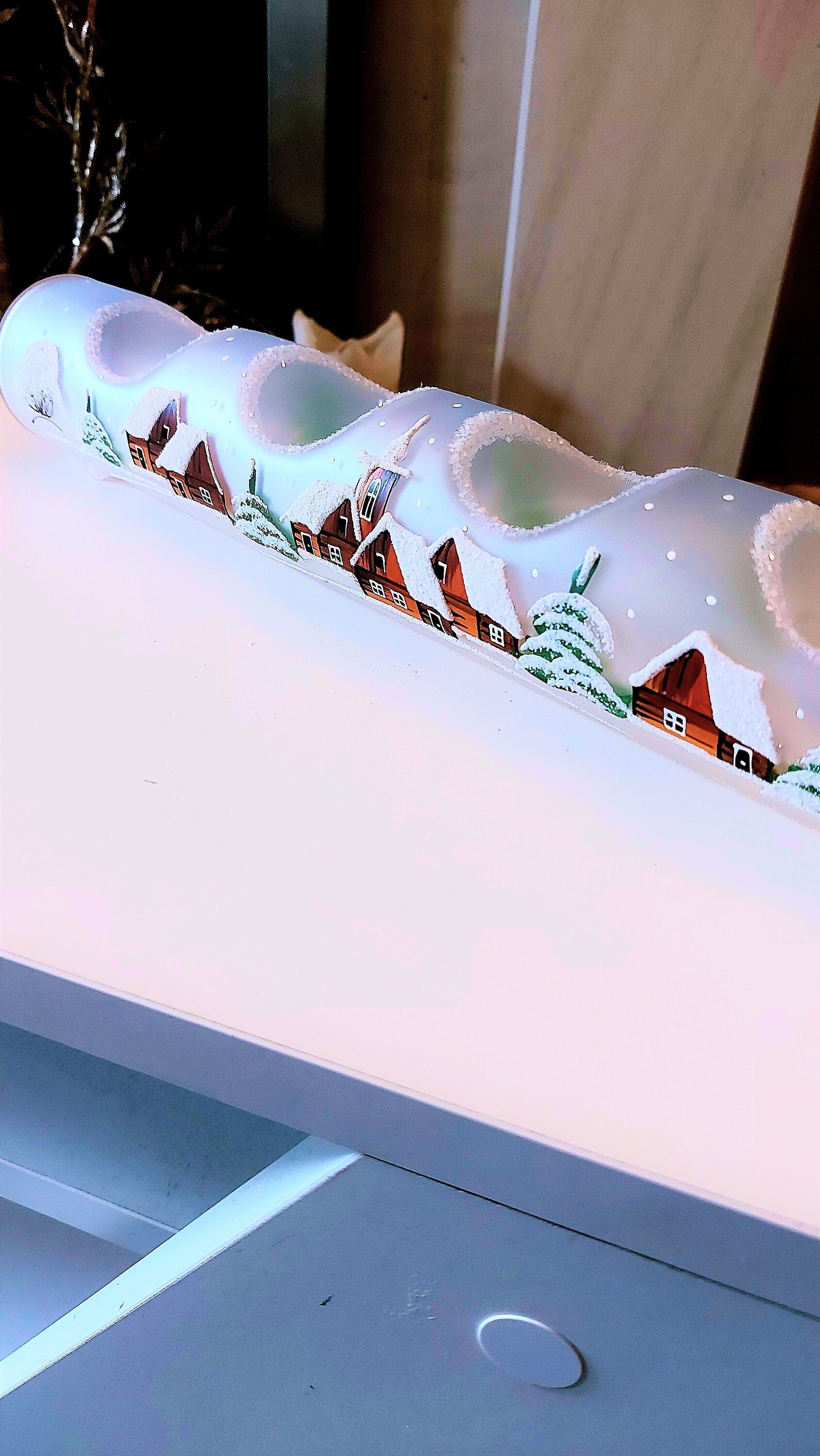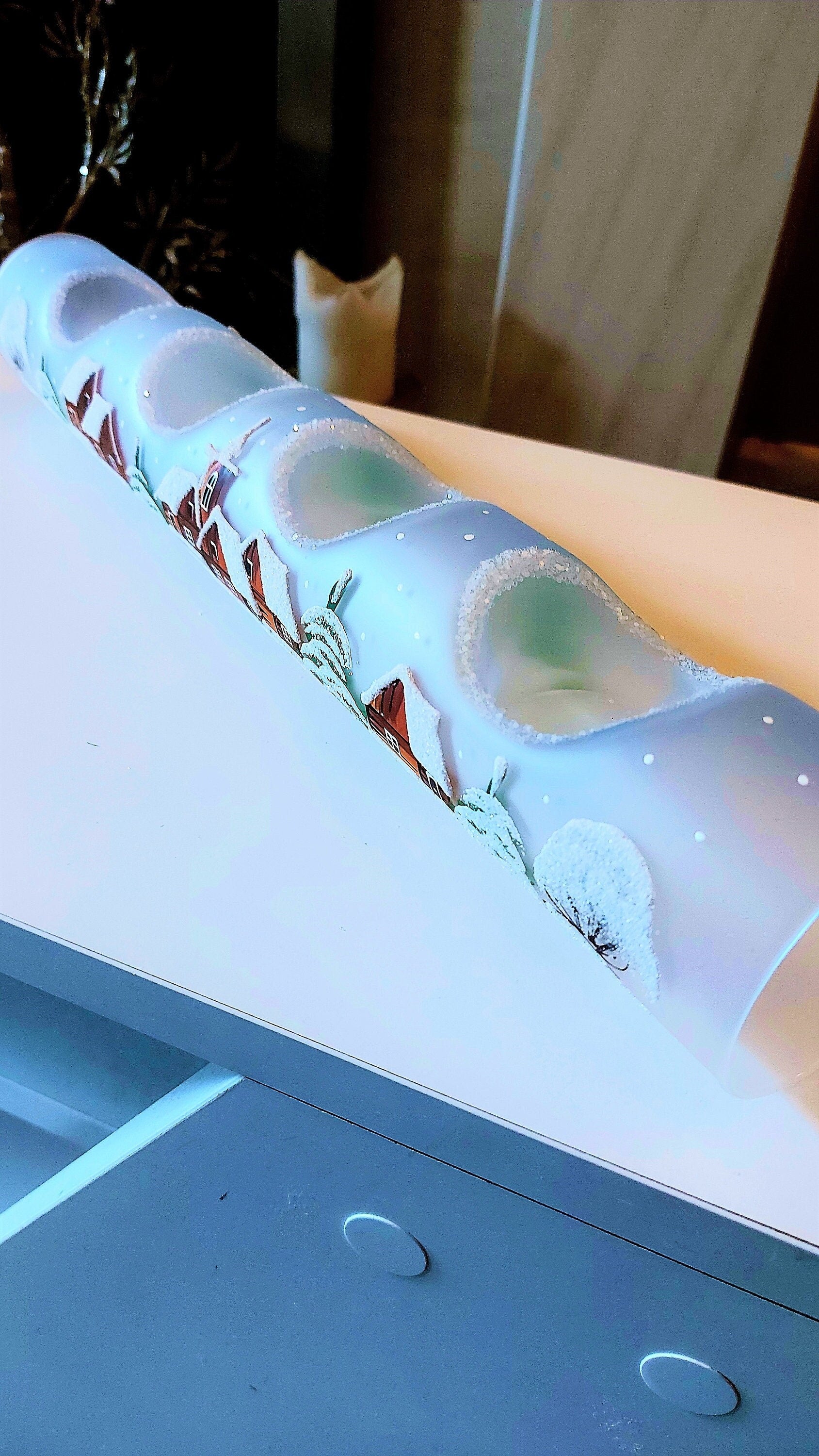Vintage Czech Hand-Painted Glass Christmas Ornament Candle Holder