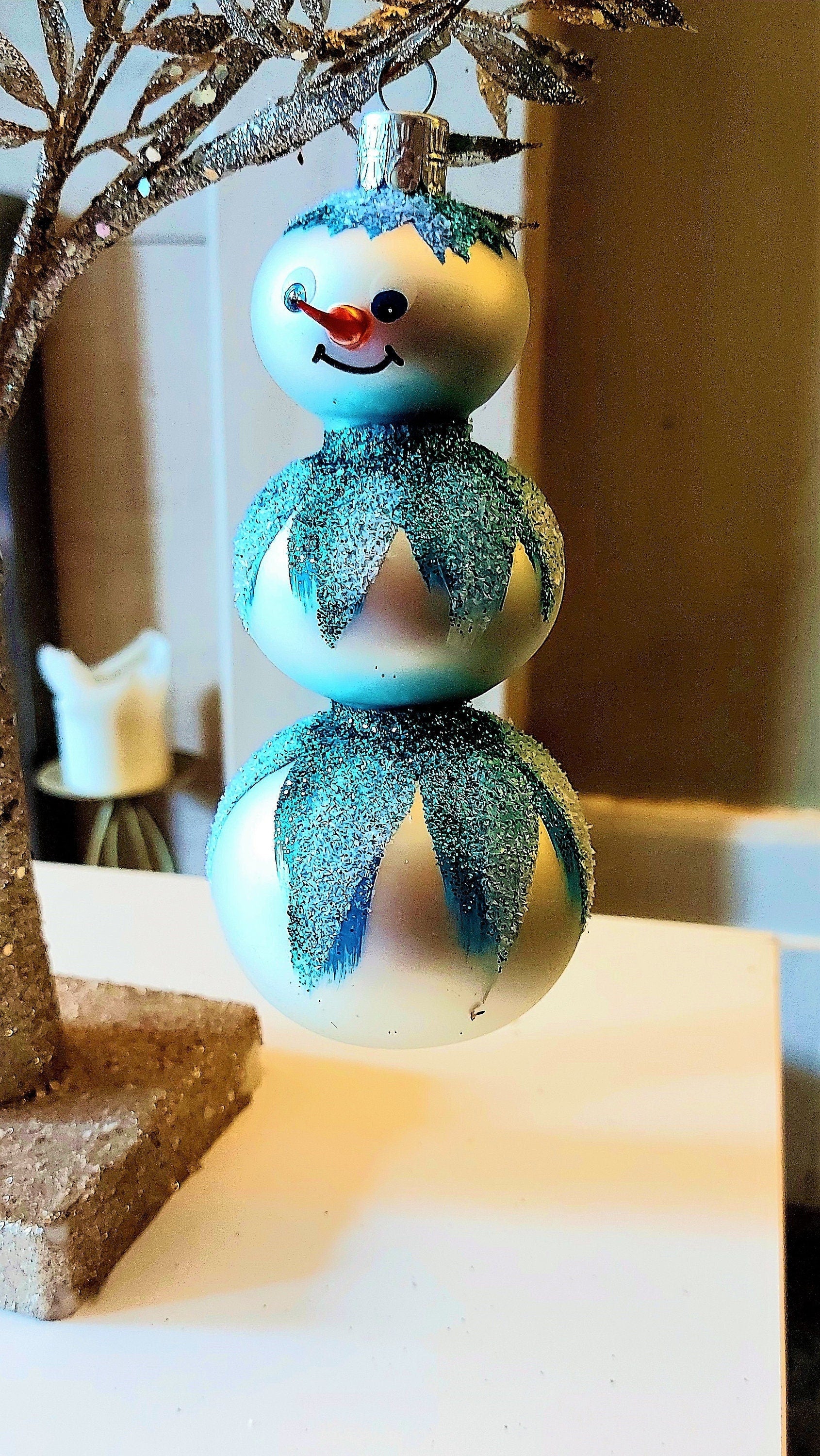 Vintage Czech Republic, Glass Blown, Hand Painted Christmas Tree Ornament - 3 Tier Snowman