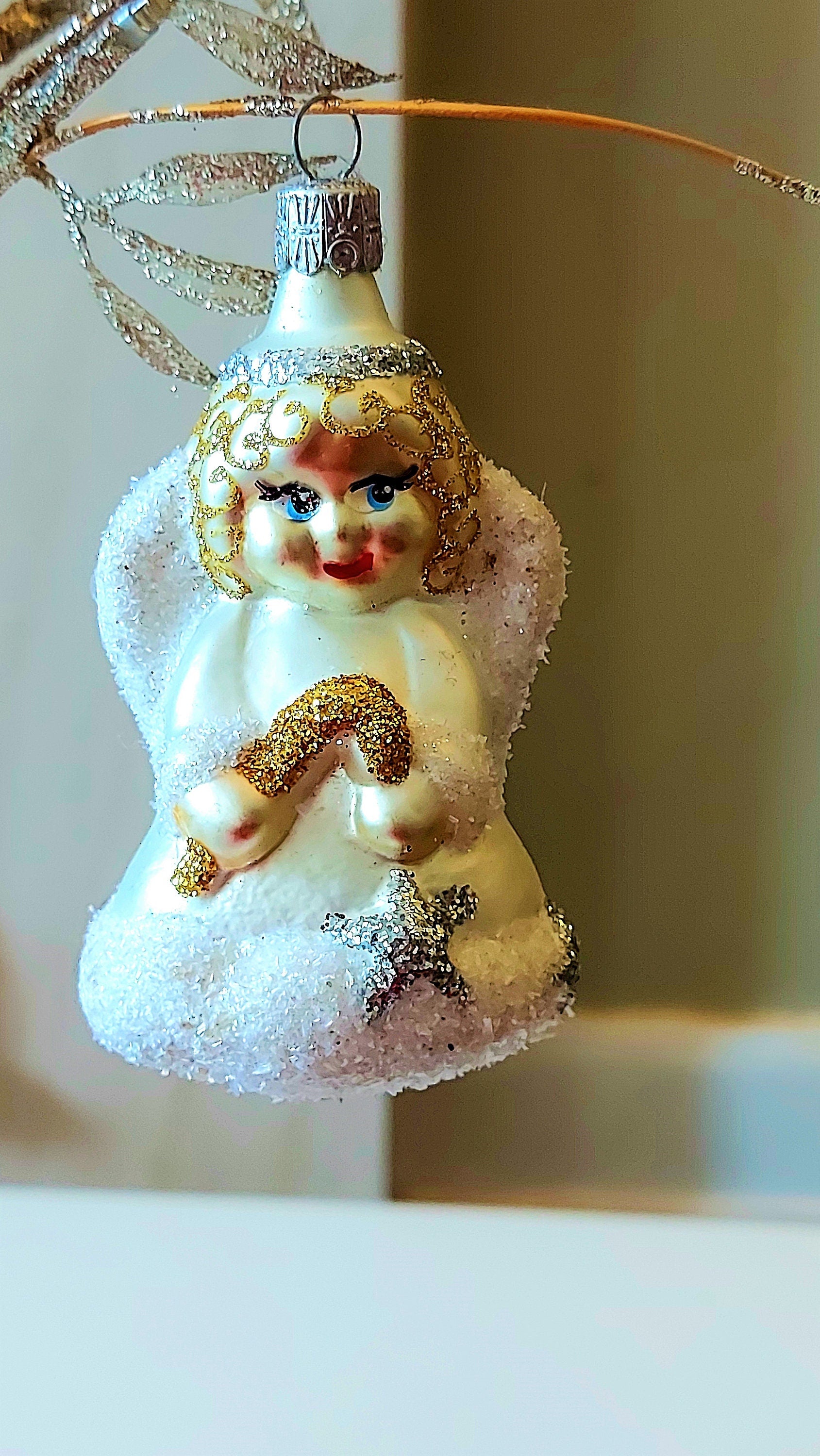 Vintage Czech Republic, Glass Blown, Hand Painted Christmas Tree Ornament - Angel
