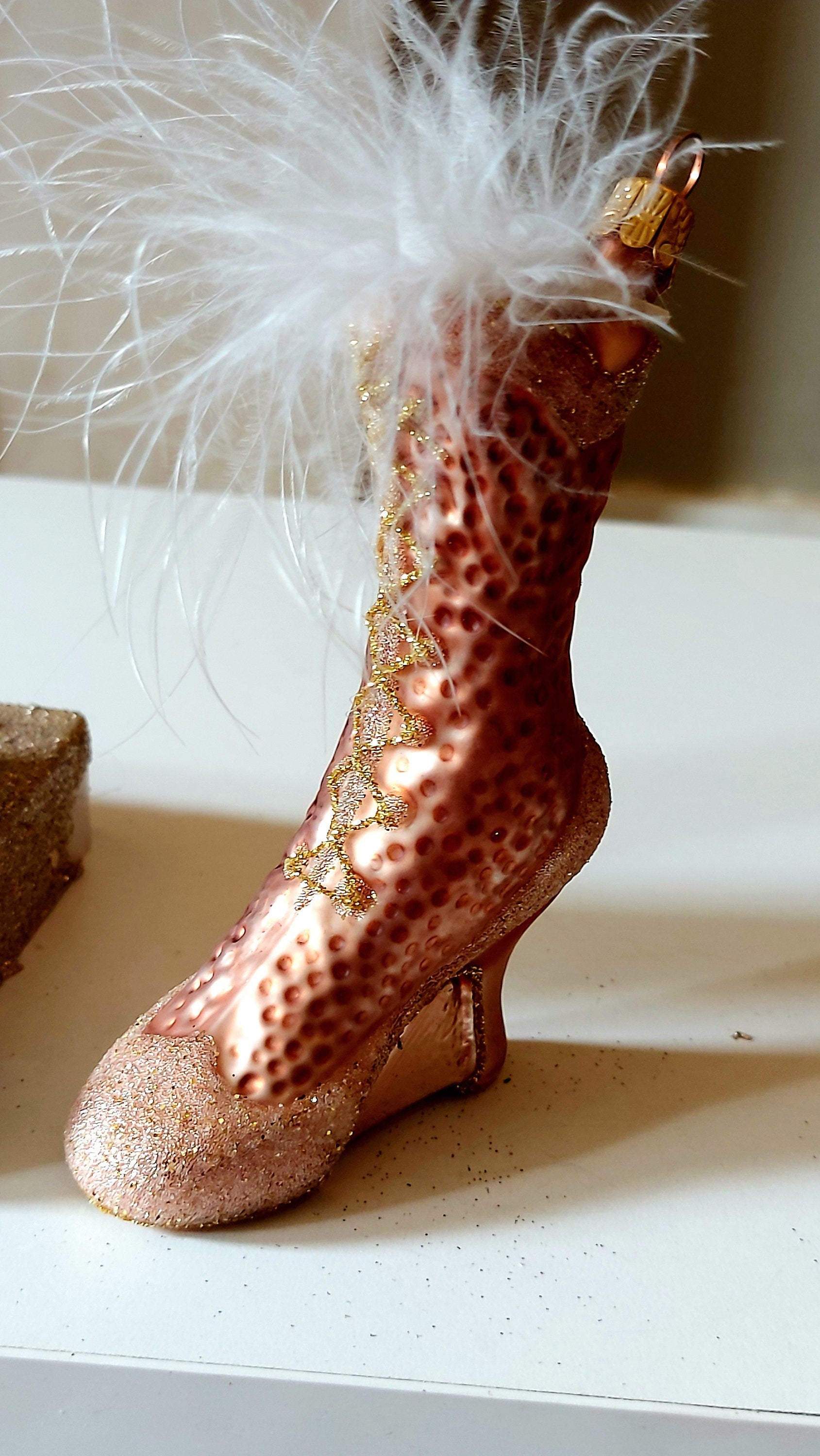 Vintage Czech Republic, Glass Blown, Hand Painted Christmas Tree Ornament - Boot Baby Pink