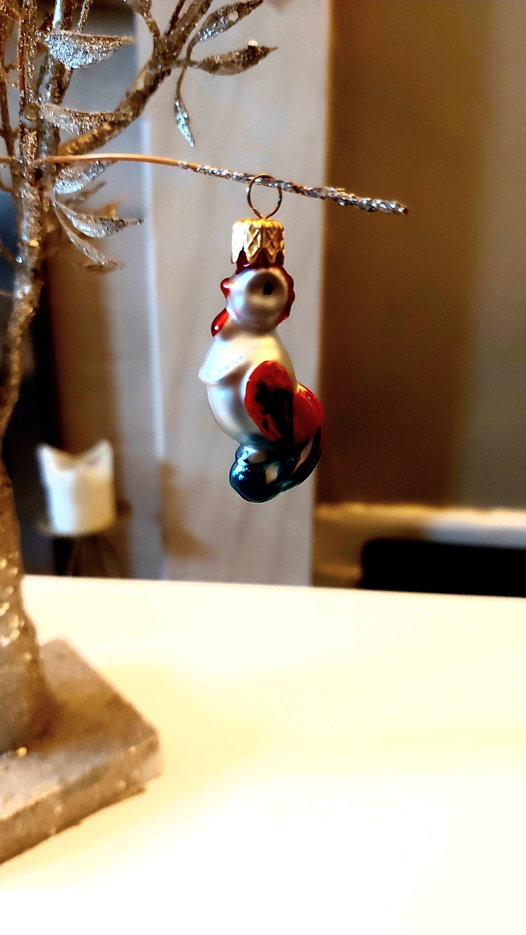 Vintage Czech Republic, Glass Blown, Hand Painted Christmas Tree Ornament - cockerels a pair ( x 2 )