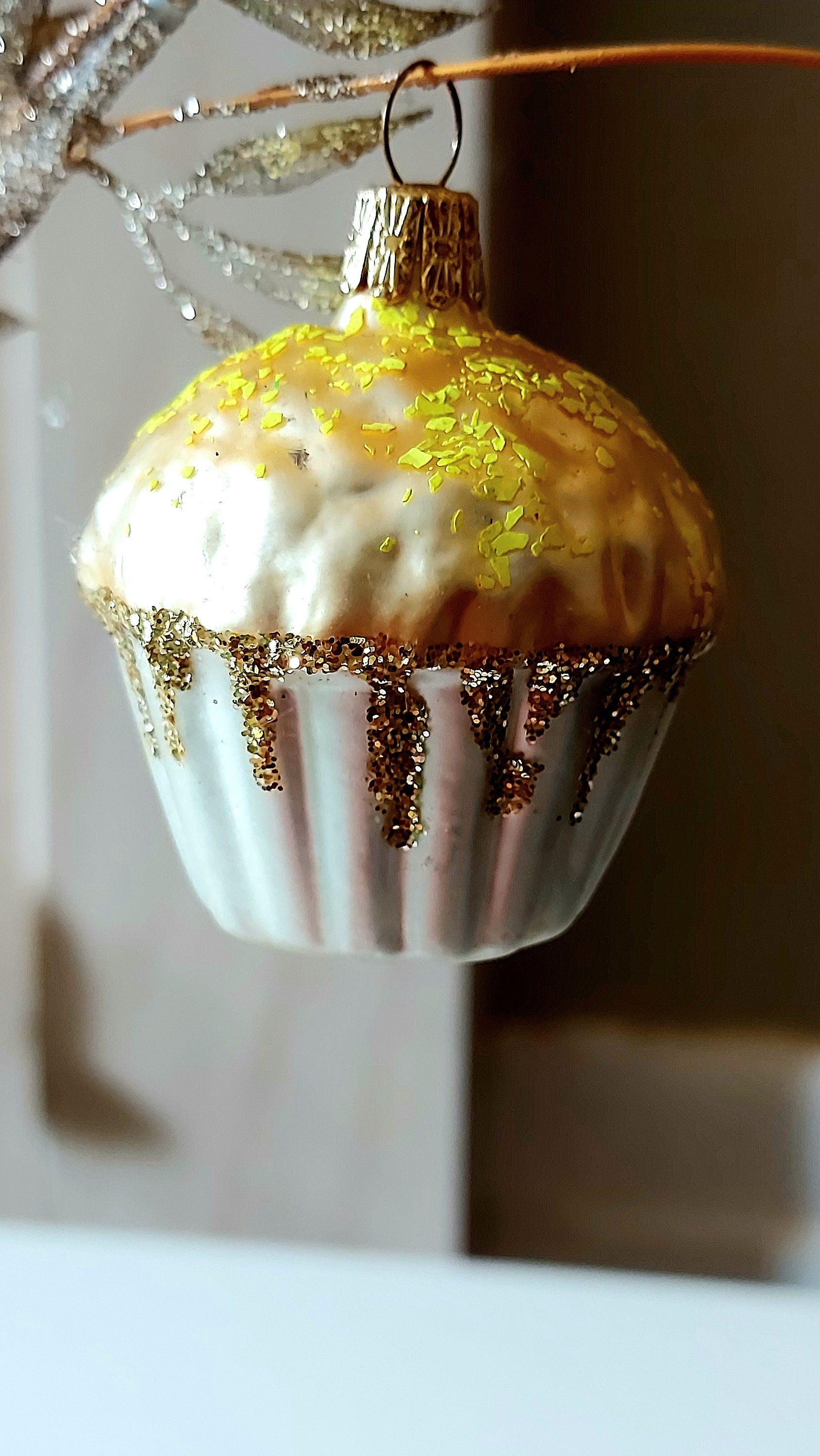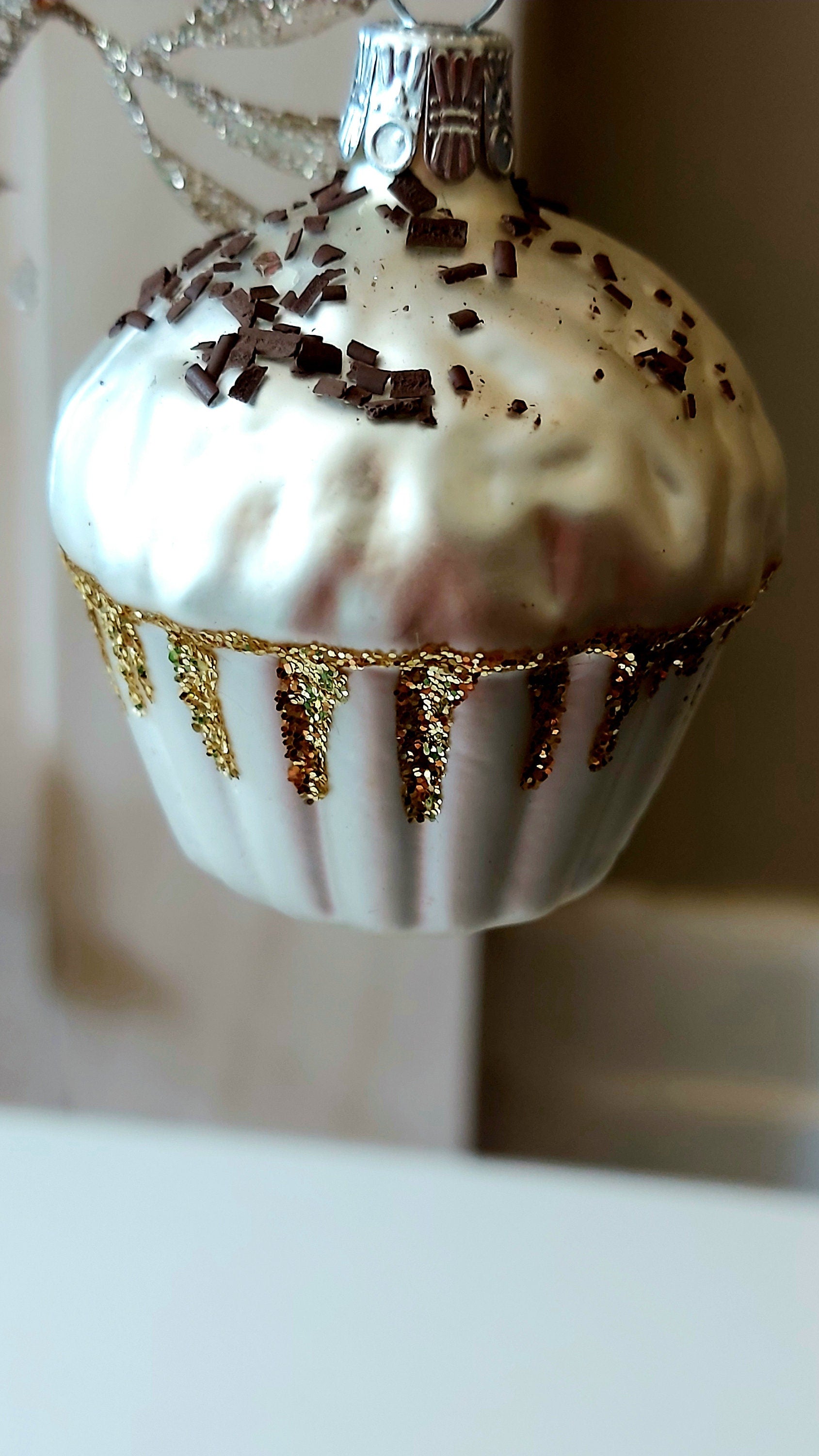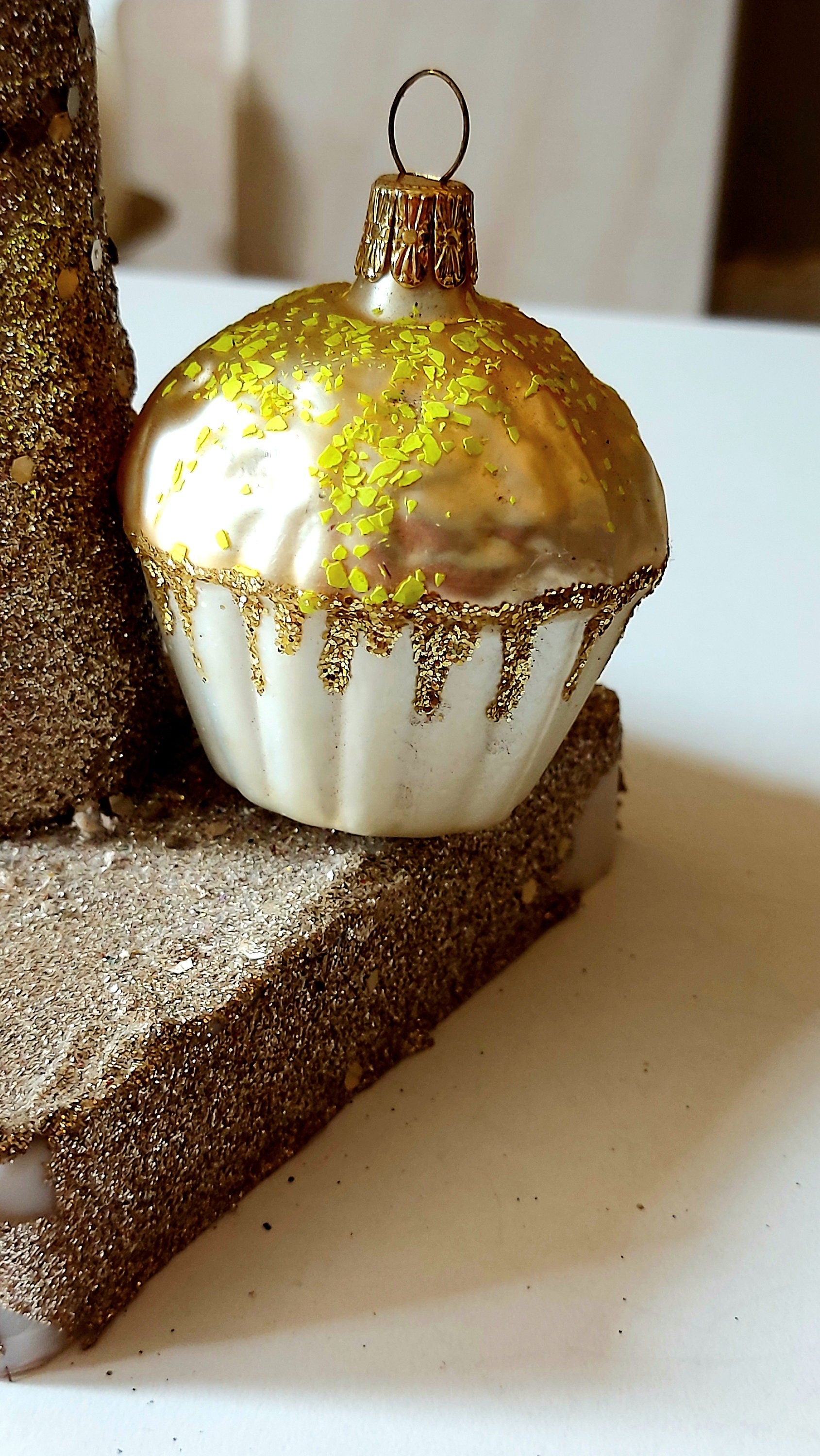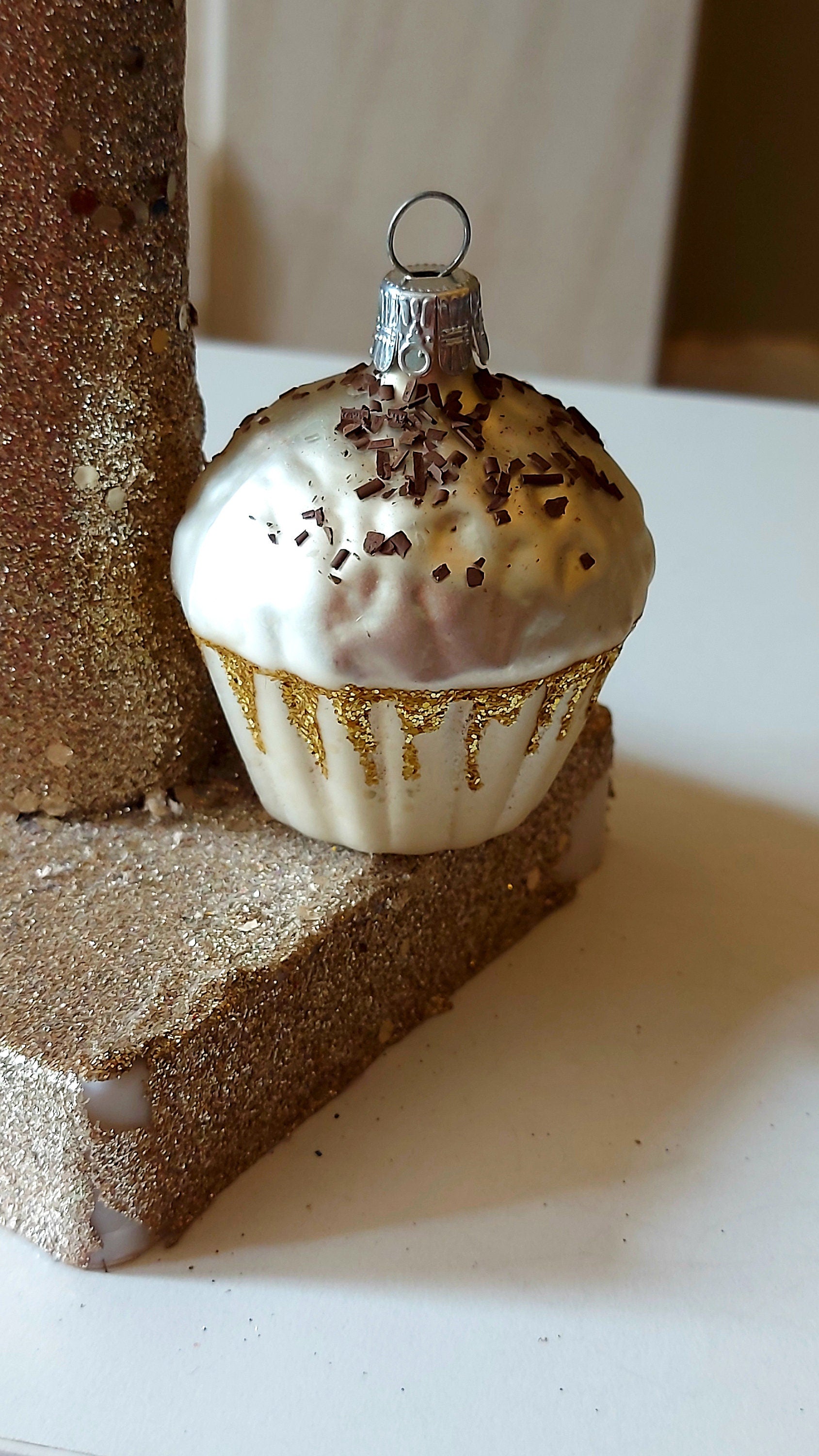 Vintage, Czech Republic, Glass Blown, Hand Painted Christmas Tree Ornament - Cup Cake