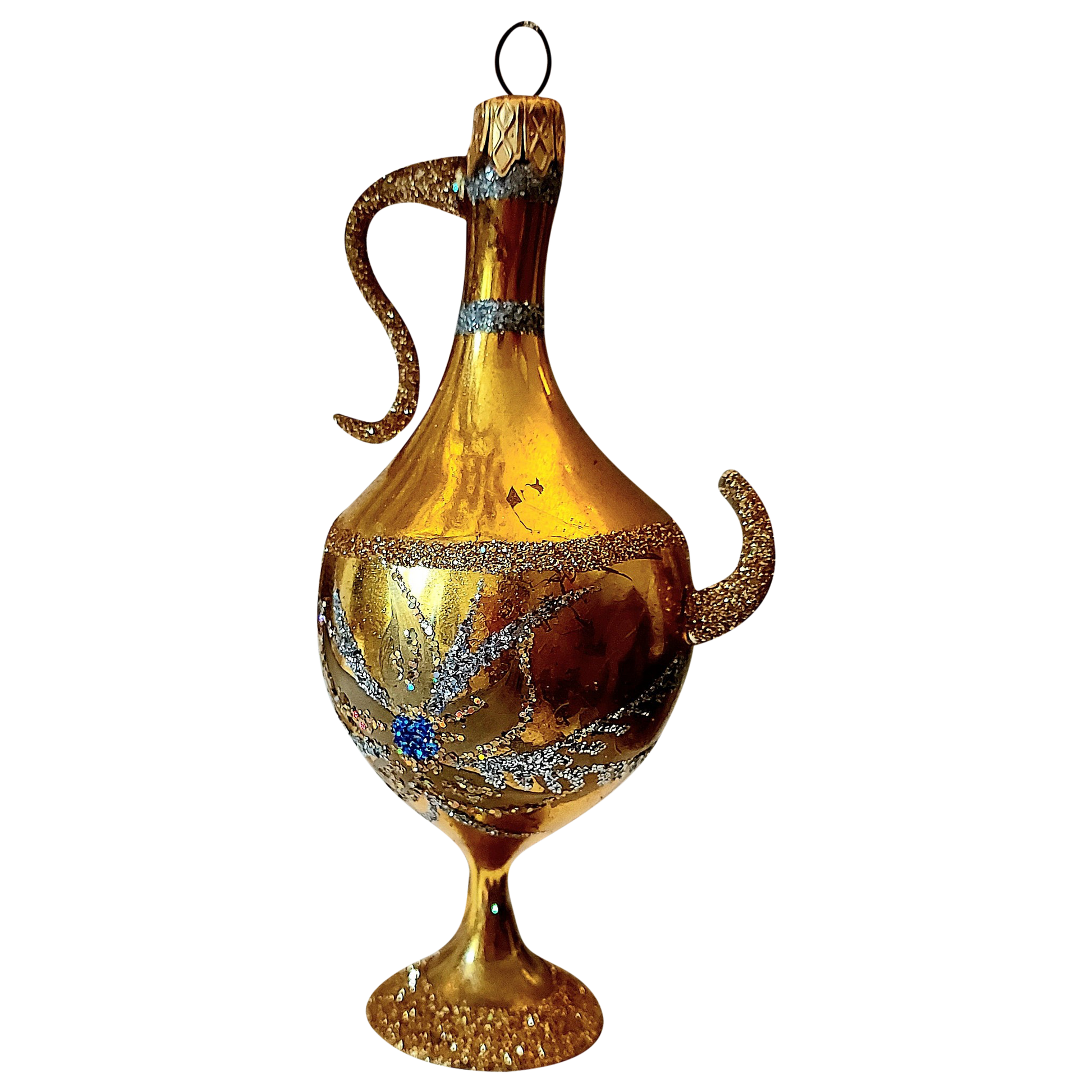Czech Republic, Glass Blown, Hand Painted Christmas Tree Ornament - Genie Lamp gold/silver