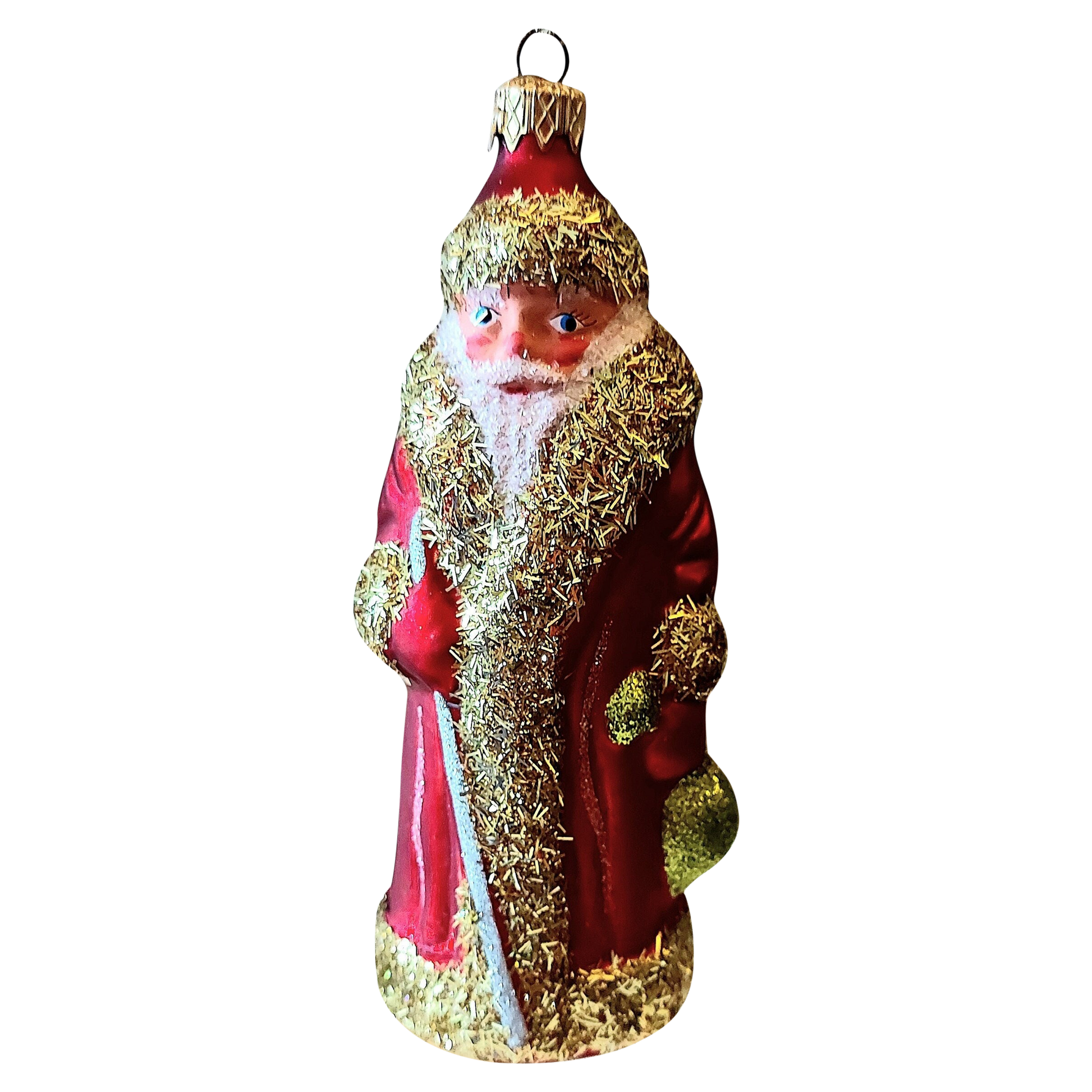 Czech Republic, Glass Blown, Hand Painted Christmas Tree Ornament - Large Santa Red/Gold