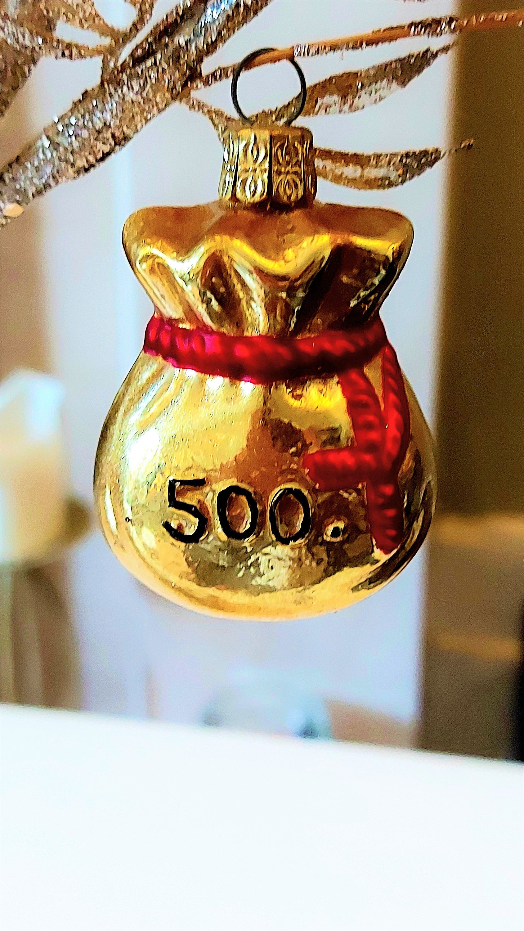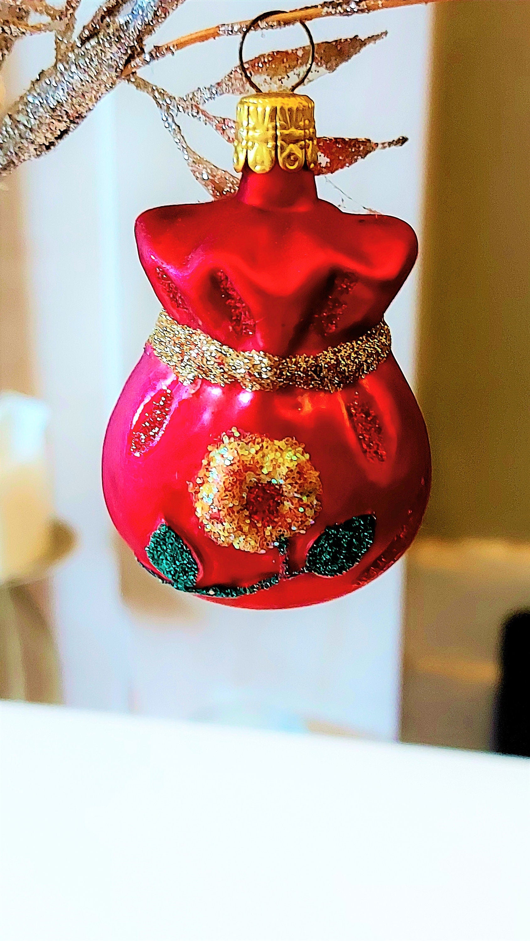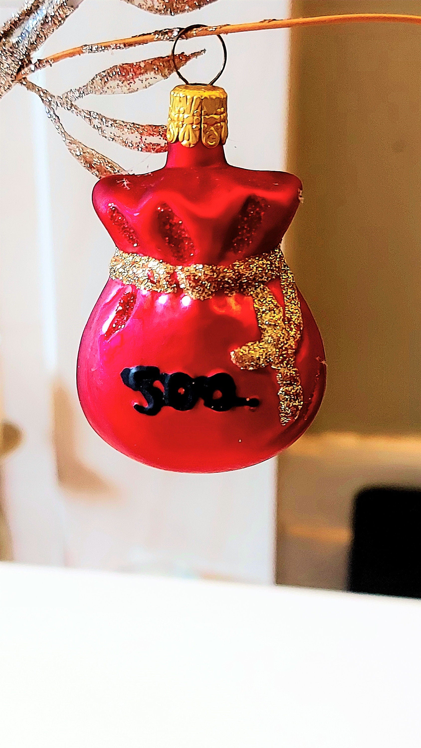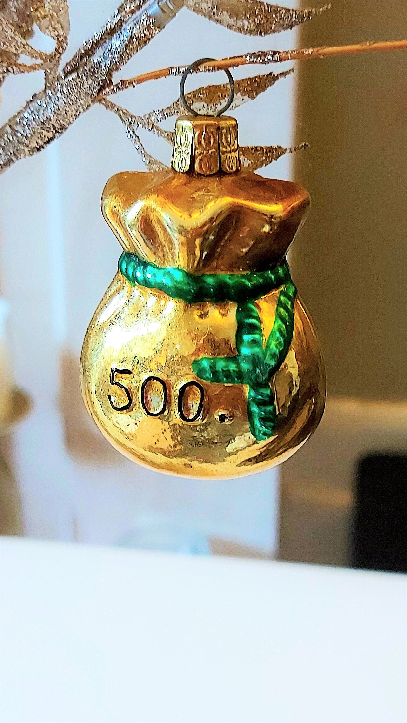 Vintage Czech Republic, Glass Blown, Hand Painted Christmas Tree Ornament - Money Bag