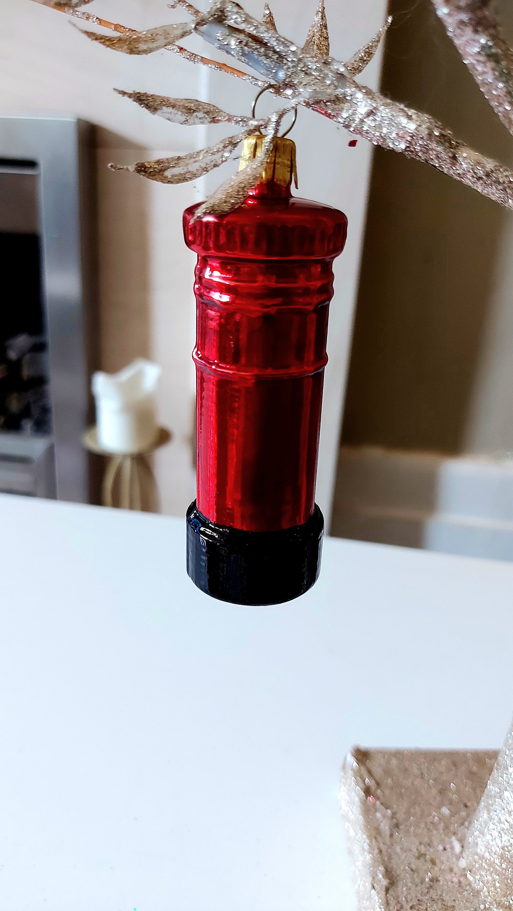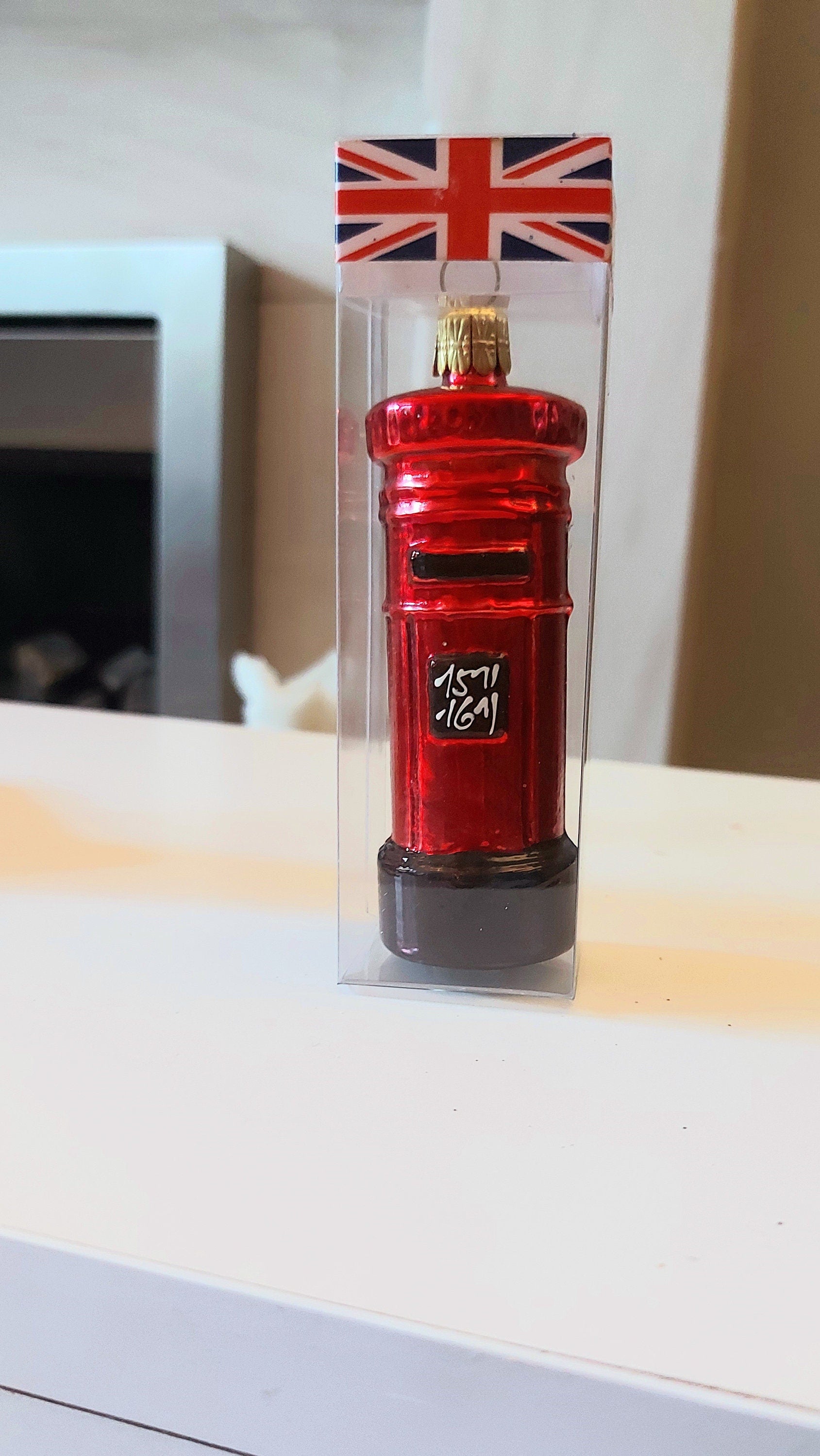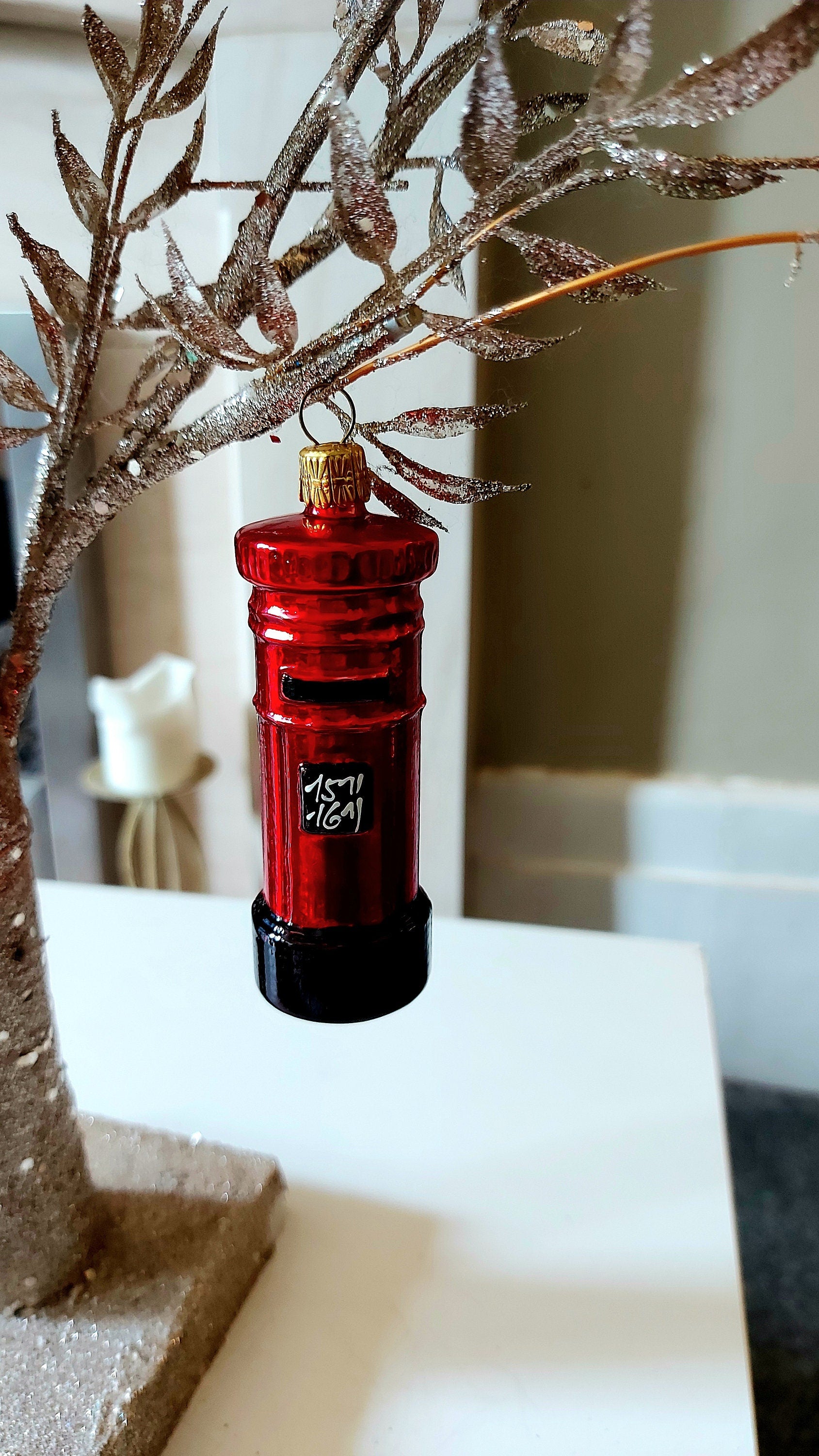 Vintage Czech Republic, Glass Blown, Hand Painted Christmas Tree Ornament - Post Box