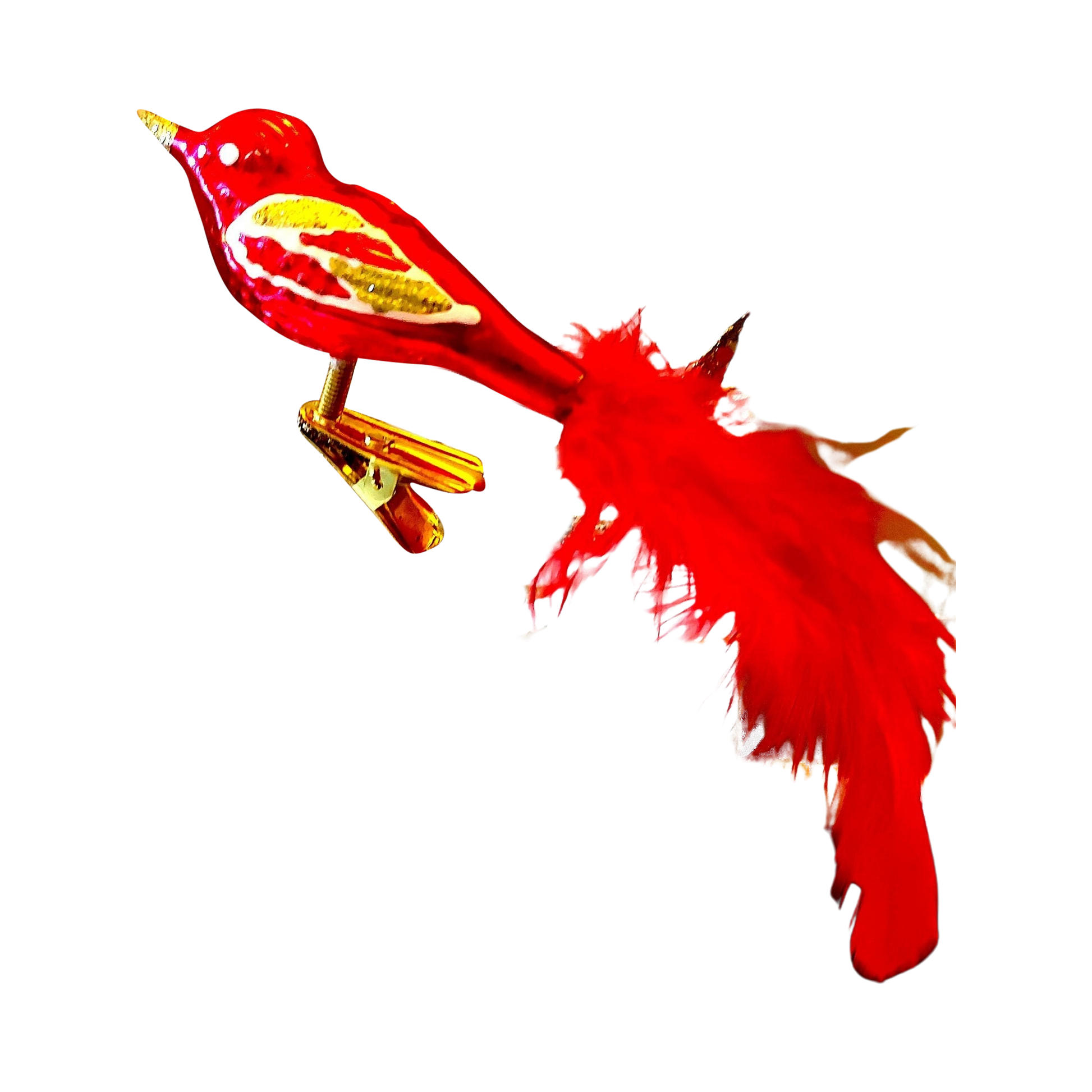 Czech Republic, Glass Blown, Hand Painted Christmas Tree Ornament - small bird with clip