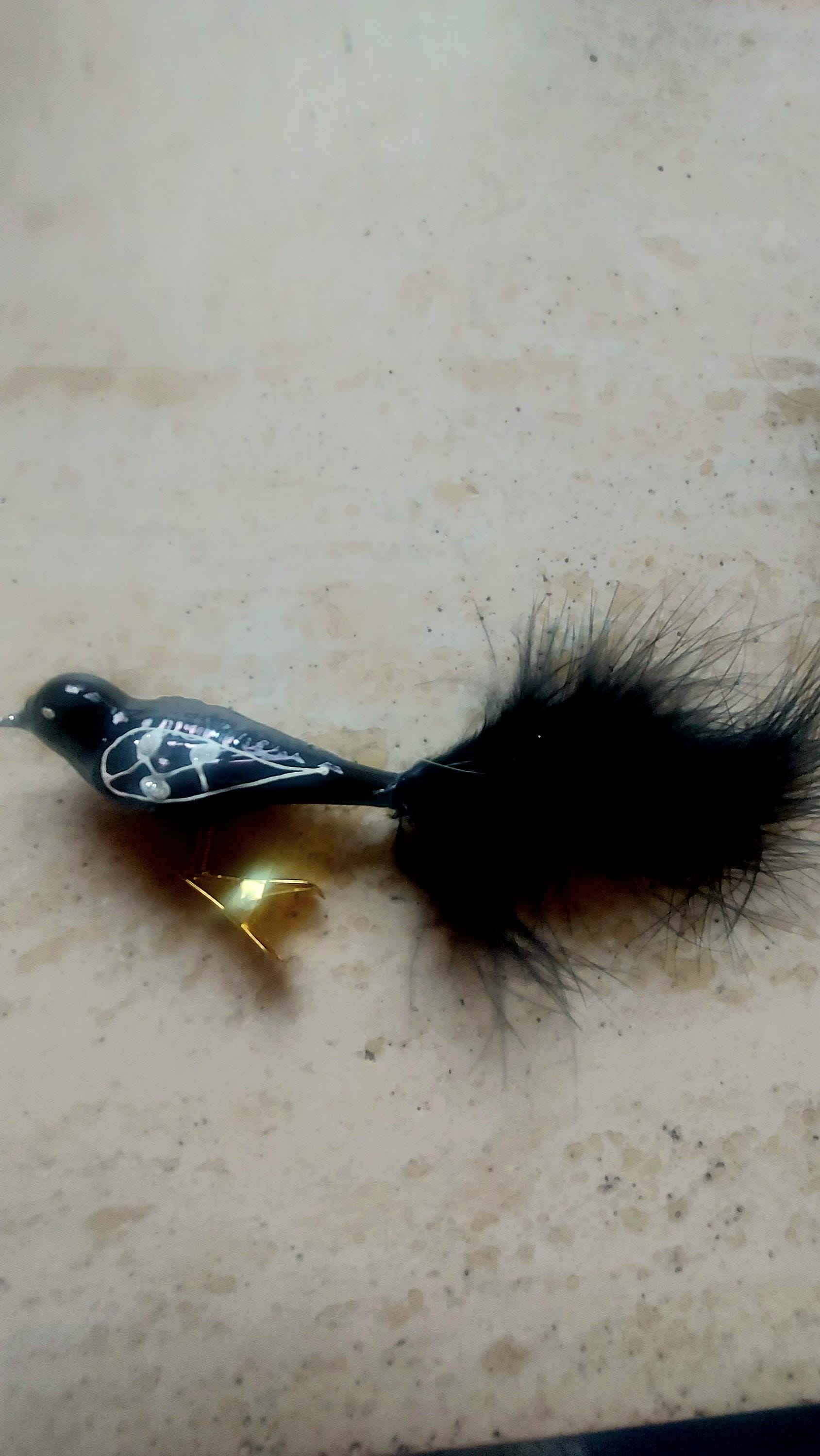 Vintage Czech Republic, Glass Blown, Hand Painted Christmas Tree Ornament - small bird with clip