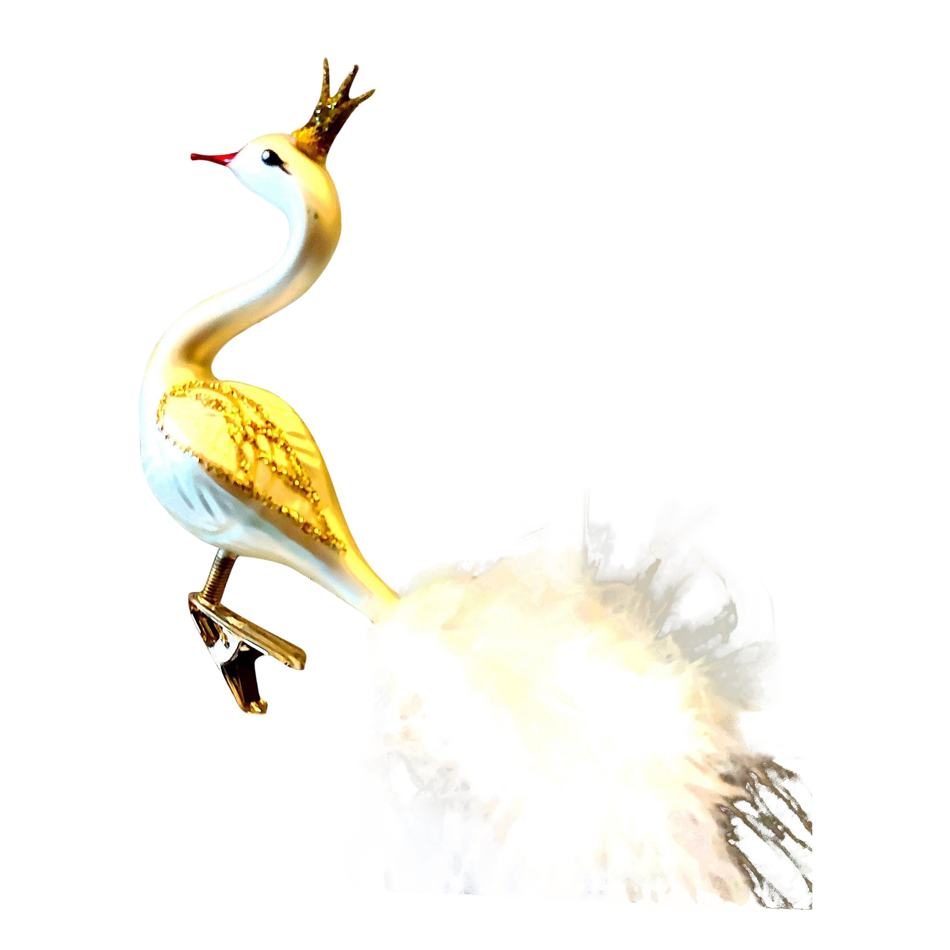 Czech Republic, Glass Blown, Hand Painted Christmas Tree Ornament - Swan with clip