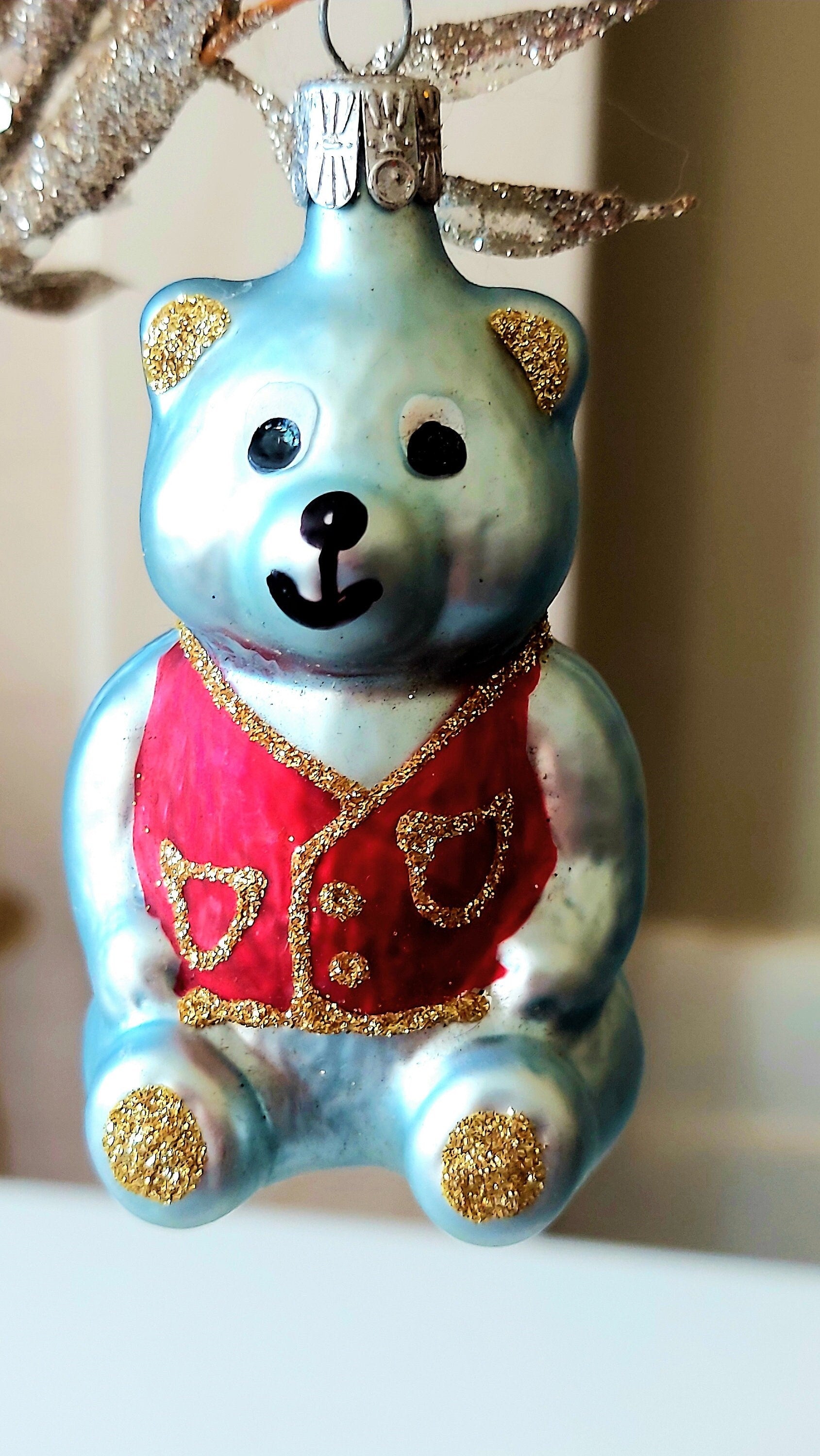 Vintage Czech Republic, Glass Blown, Hand Painted Christmas Tree Ornament - Teddy a pair ( x 2 )
