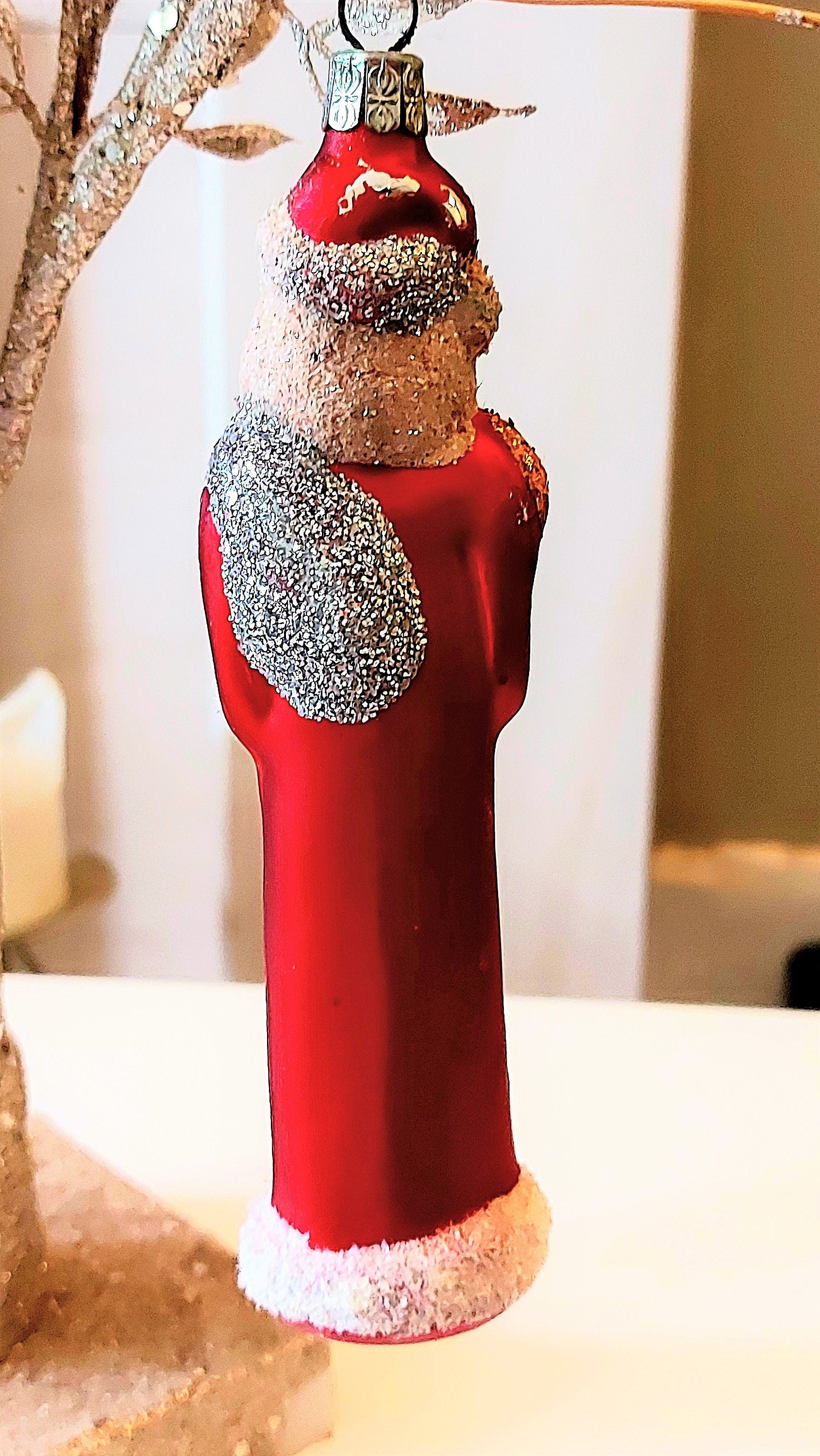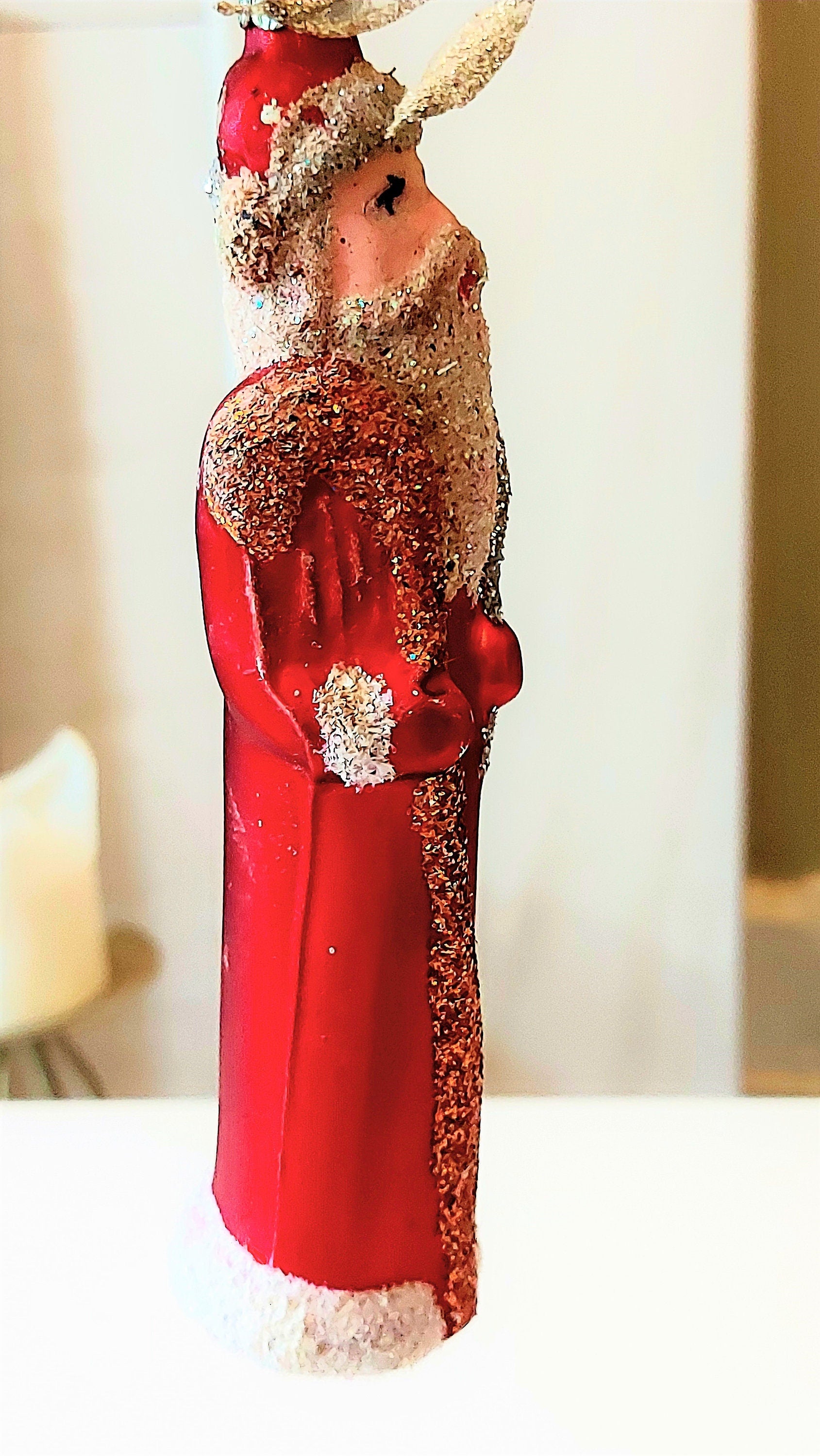 Vintage Czech Republic, Glass Blown, Hand Painted Christmas Tree Ornament - Thin Santa Red
