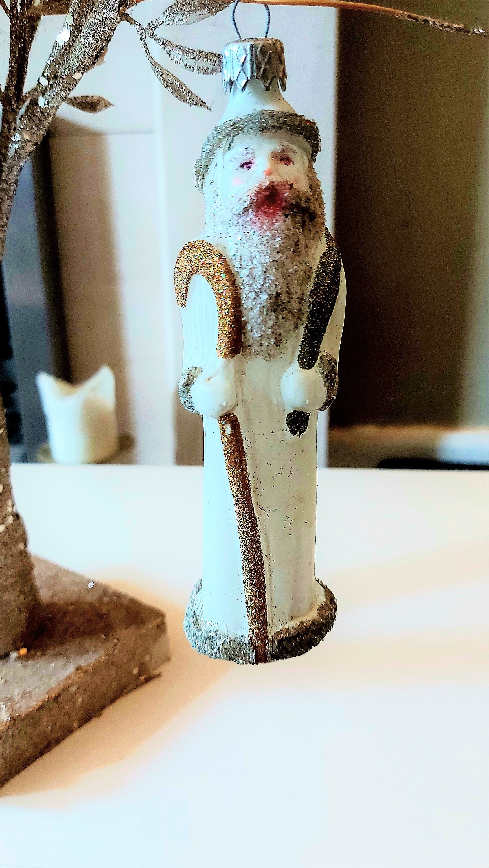 Vintage Czech Republic, Glass Blown, Hand Painted Christmas Tree Ornament - Thin Santa White (reduced)